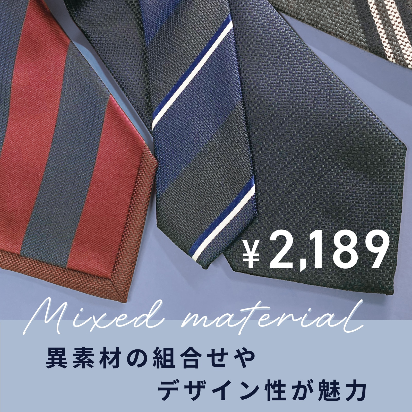 異素材の組み合わせやデザイン性が魅力の【2,189円ネクタイ】多数取り揃えております