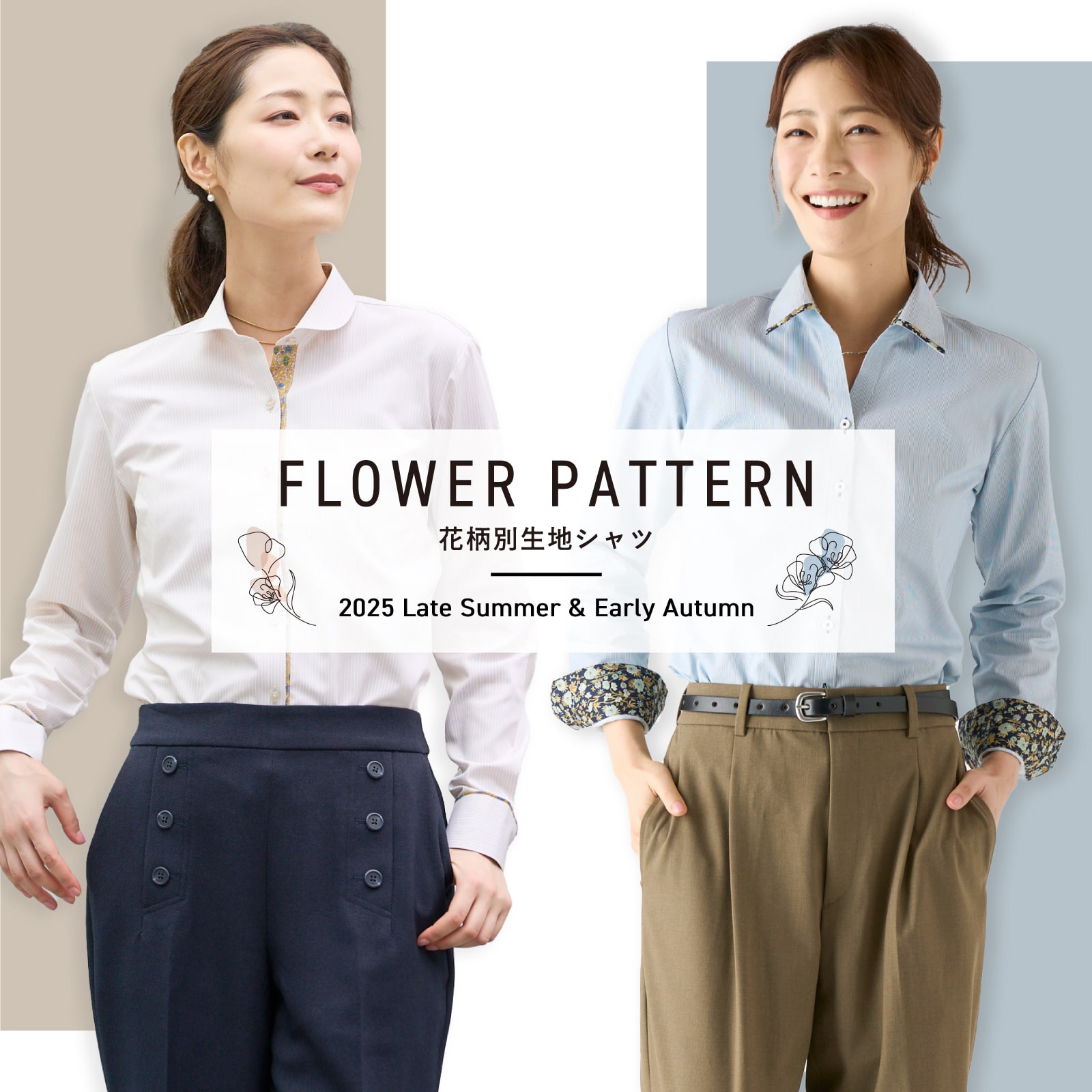 「花柄別生地」を施したレディースシャツ好評発売中です!