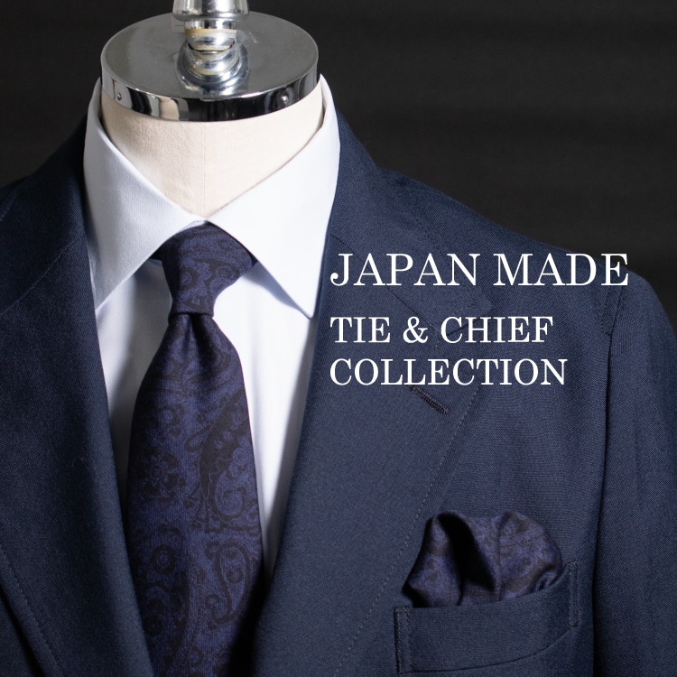 CANONICO生地を使用したネクタイ&チーフセット。着用する度に感じる至福の瞬間をご堪能下さい。