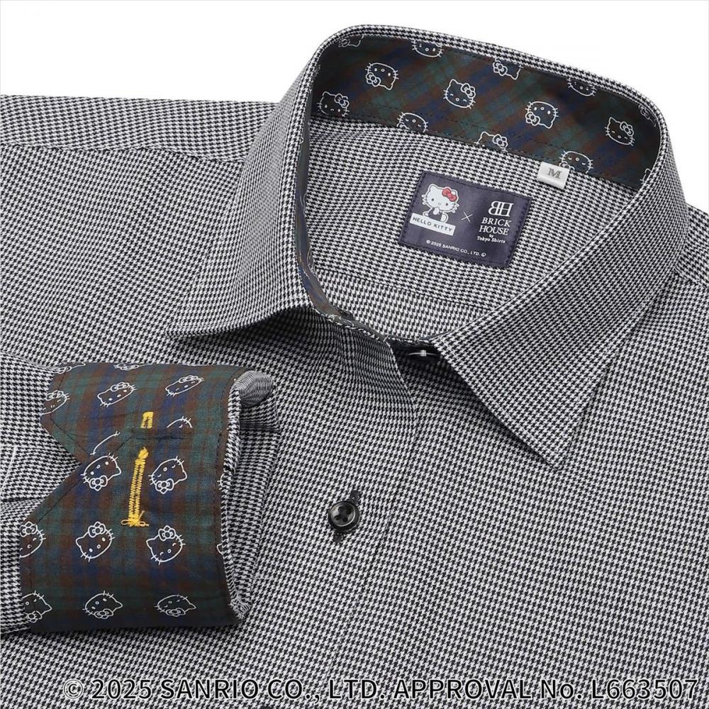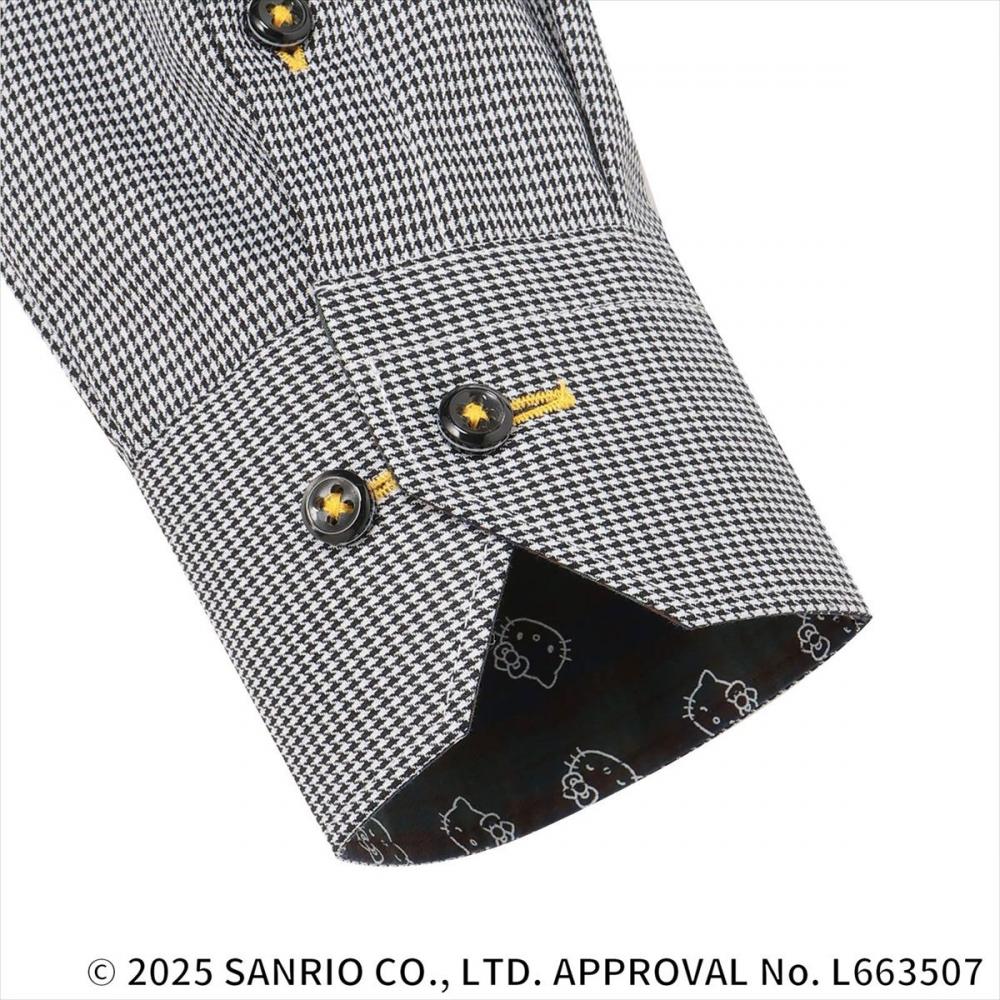 可愛らしいキティちゃんのデザインを ビジネスシーンに溶け込みやすい 別布やボタンの配色、ボタン糸で 表現した他にはないワイシャツ。