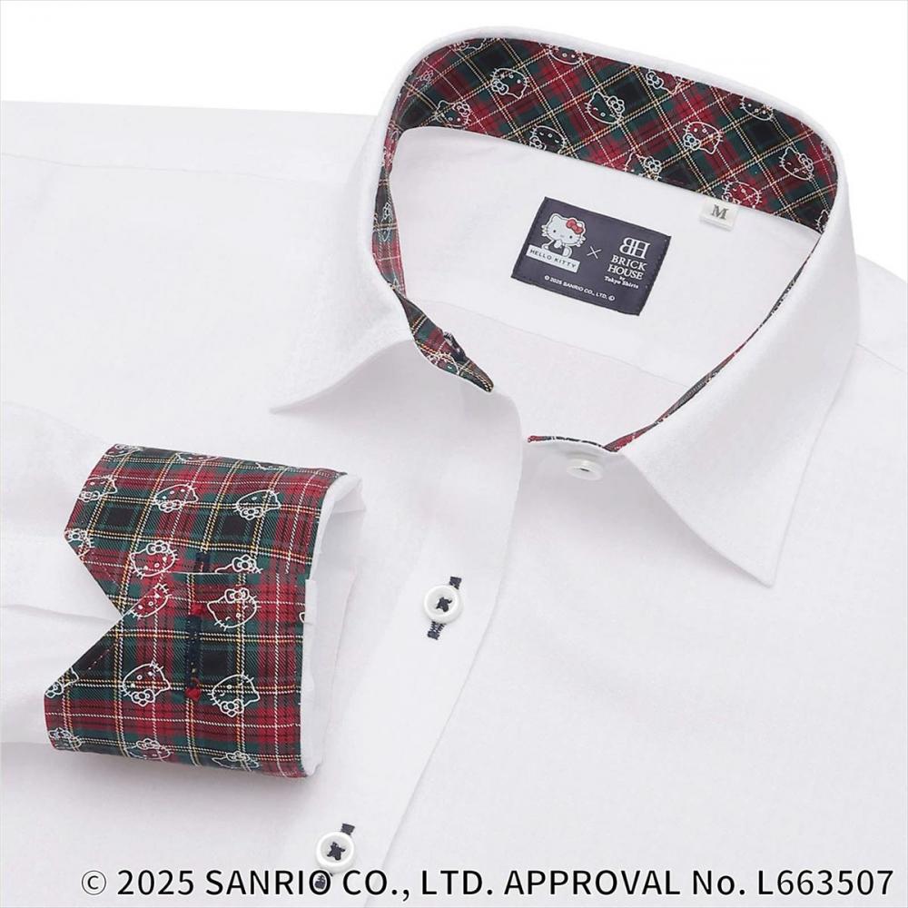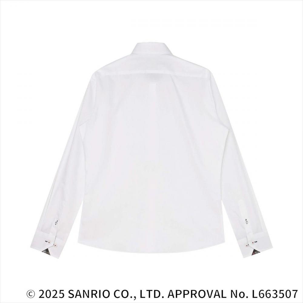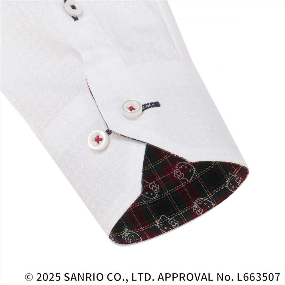 可愛らしいキティちゃんのデザインを ビジネスシーンに溶け込みやすい 別布やボタンの配色、ボタン糸で 表現した他にはないワイシャツ。