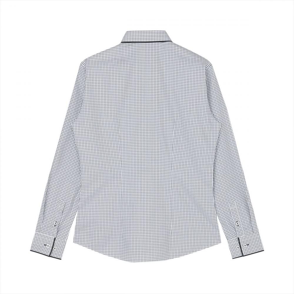 ポイント衿羽根・袖を別布で縁取った エレガンスな仕様のワイシャツ。