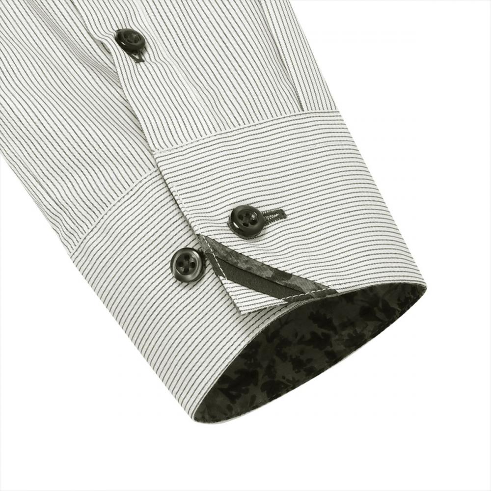 ポイント衿羽根・袖を2色の別布で彩った ダブルマイター仕様のワイシャツ。