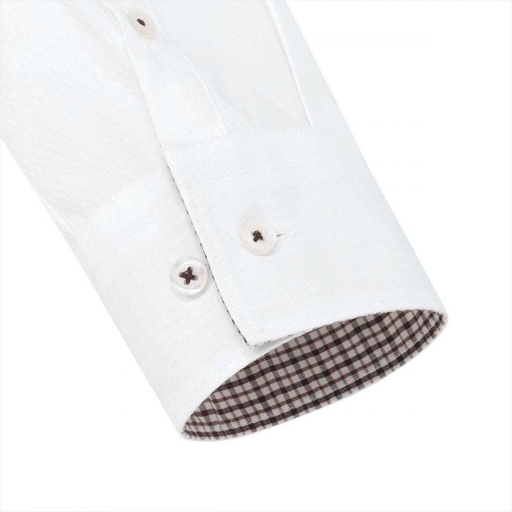 形態安定加工と綿×ポリエステル 素材で、クリーニング要らずの 自宅で取扱い楽ちんのワイシャツ。