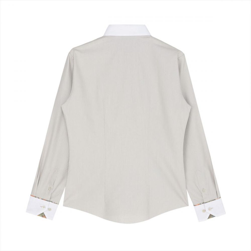 カフス挟み込み部分と衿羽根部分に 見える別布がアクセントになり こだわりを感じさせる一枚。
