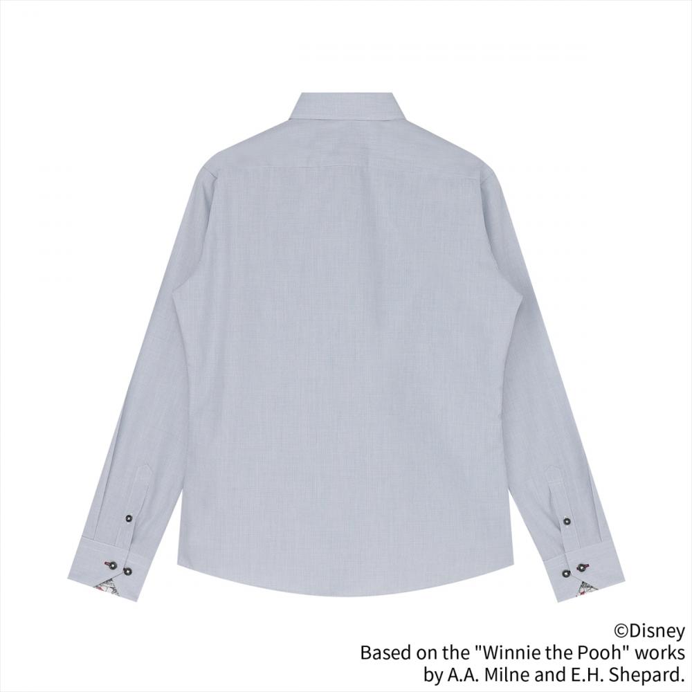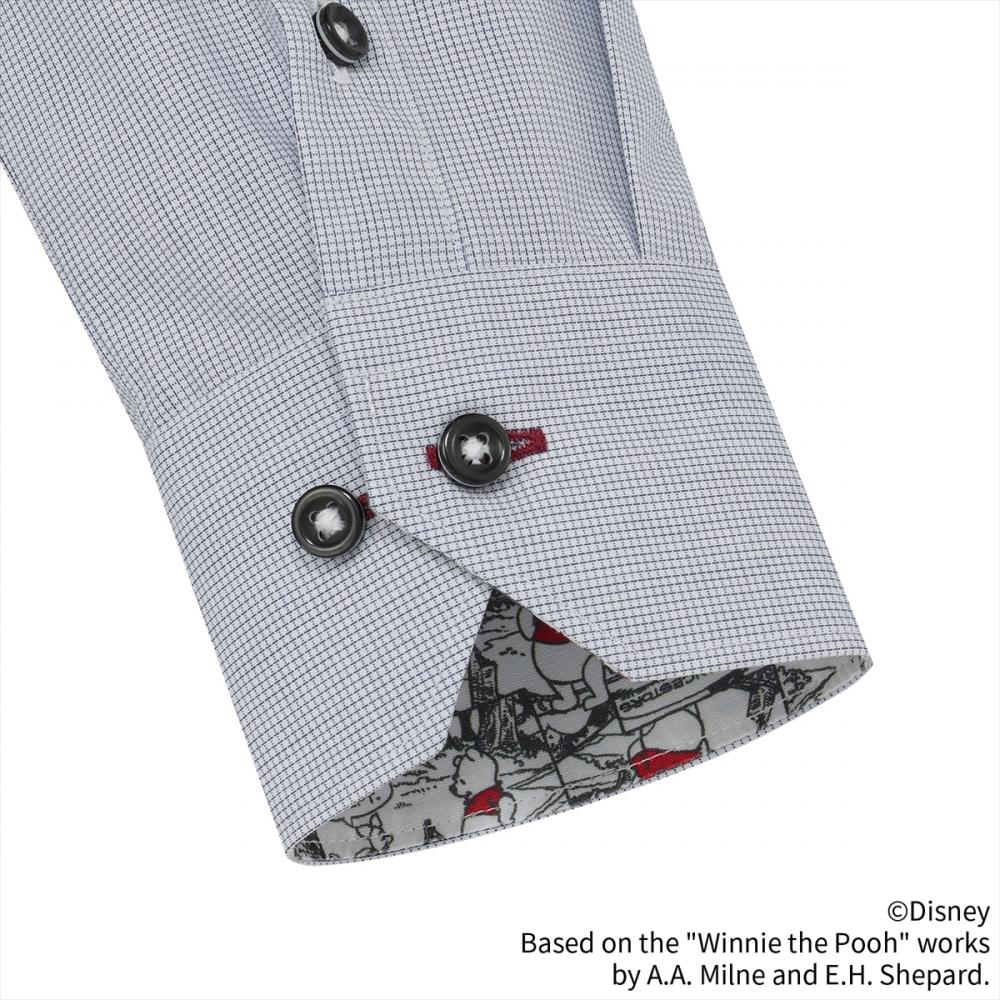 100エーカーの森に住む「くまのプーさん」デザイン 別生地を台衿内側・カフス裏側に配置したシャツ。