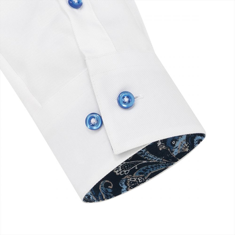 台衿内側・カフス裏側:別布仕様原産国 カンボジア 注意点 ※別布を含む濃色生地は色落ち・移染が 発生する場合があるため、お洗濯時は 衣類の組合わせにご注意ください。