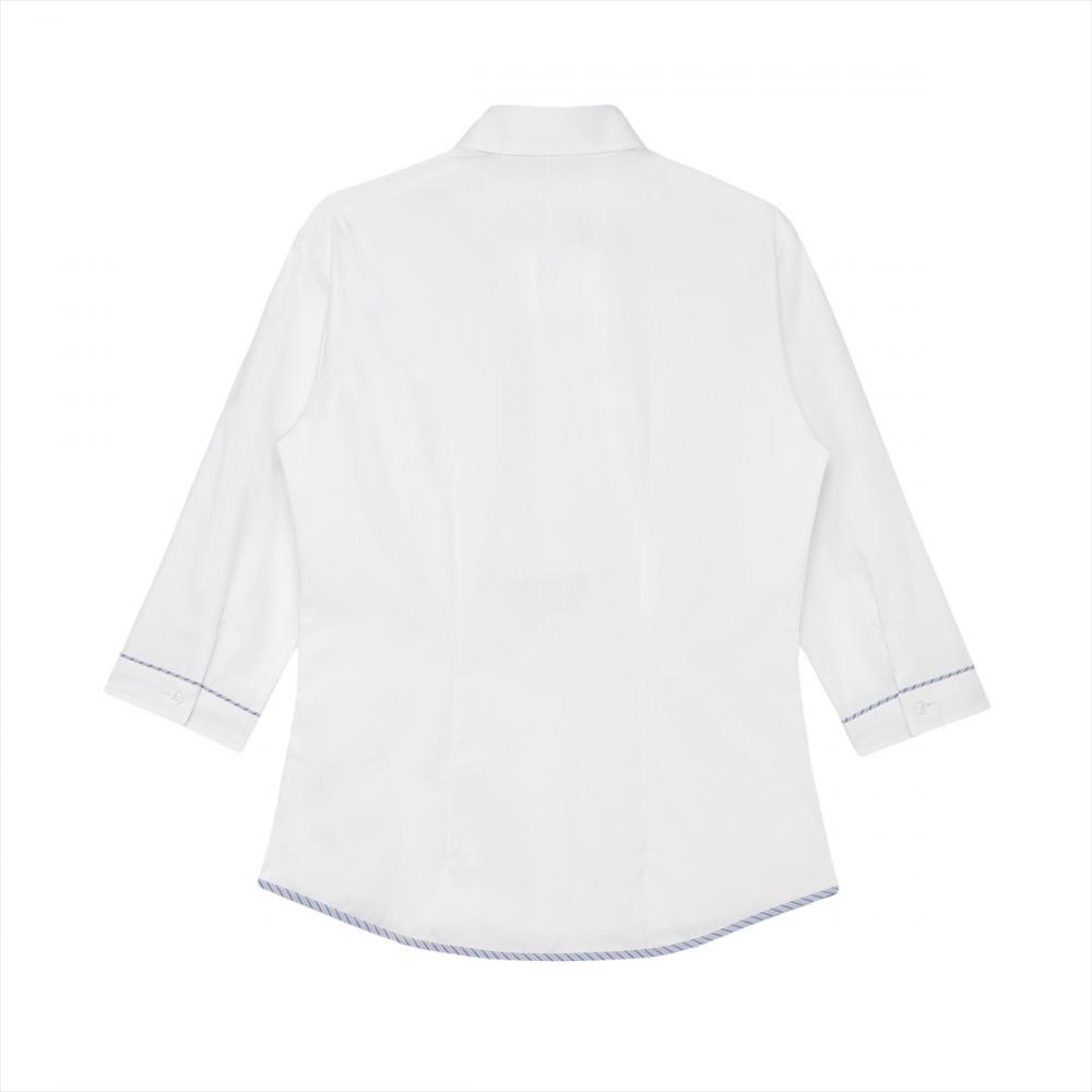 袖・裾のパイピング仕様が彩りをプラスし、 ボトムスにアウト、シャツ一枚での装いでも 華やかな洒落感を感じさせるデザインです。衿型 スキッパー衿 素材 ポリエステル65% 綿35%