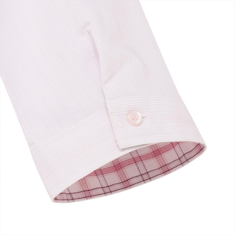 形態安定加工と綿×ポリエステル 素材で、クリーニング要らずの 自宅で取扱い楽ちんのワイシャツ。衿型 スキッパー衿 素材 ポリエステル75% 綿25%