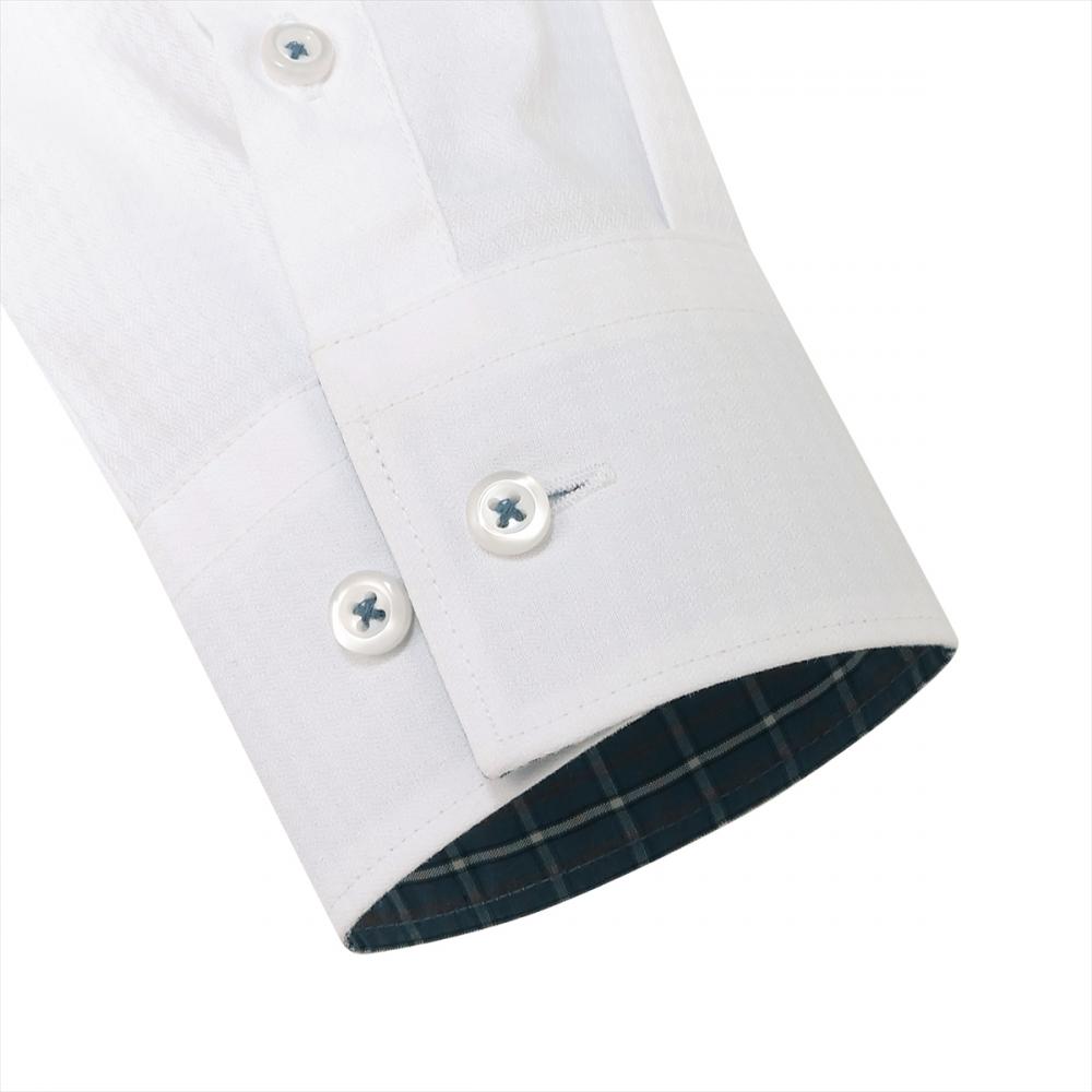 形態安定加工と綿×ポリエステル 素材で、クリーニング要らずの 自宅で取扱い楽ちんのワイシャツ。衿型 レギュラー衿 素材 ポリエステル65% 綿35%