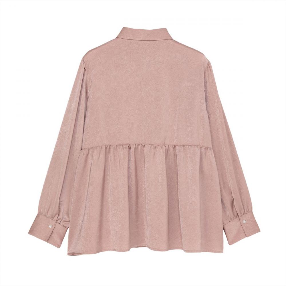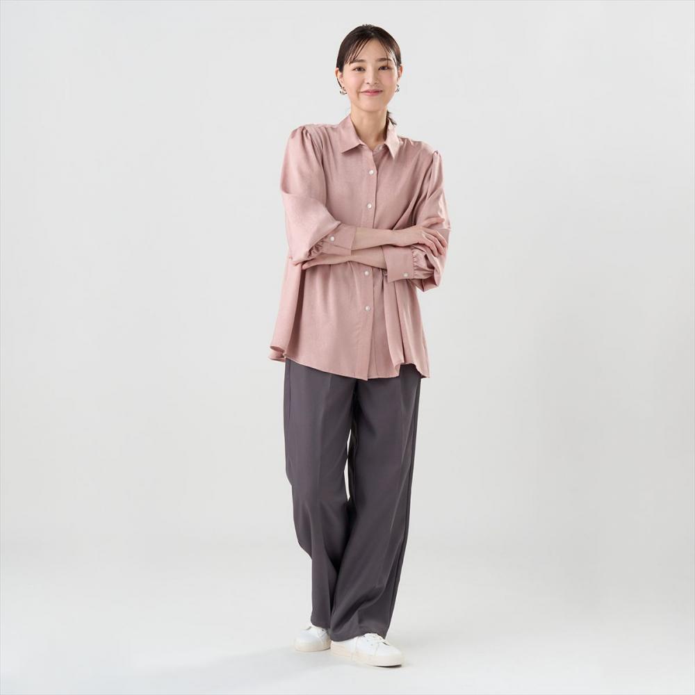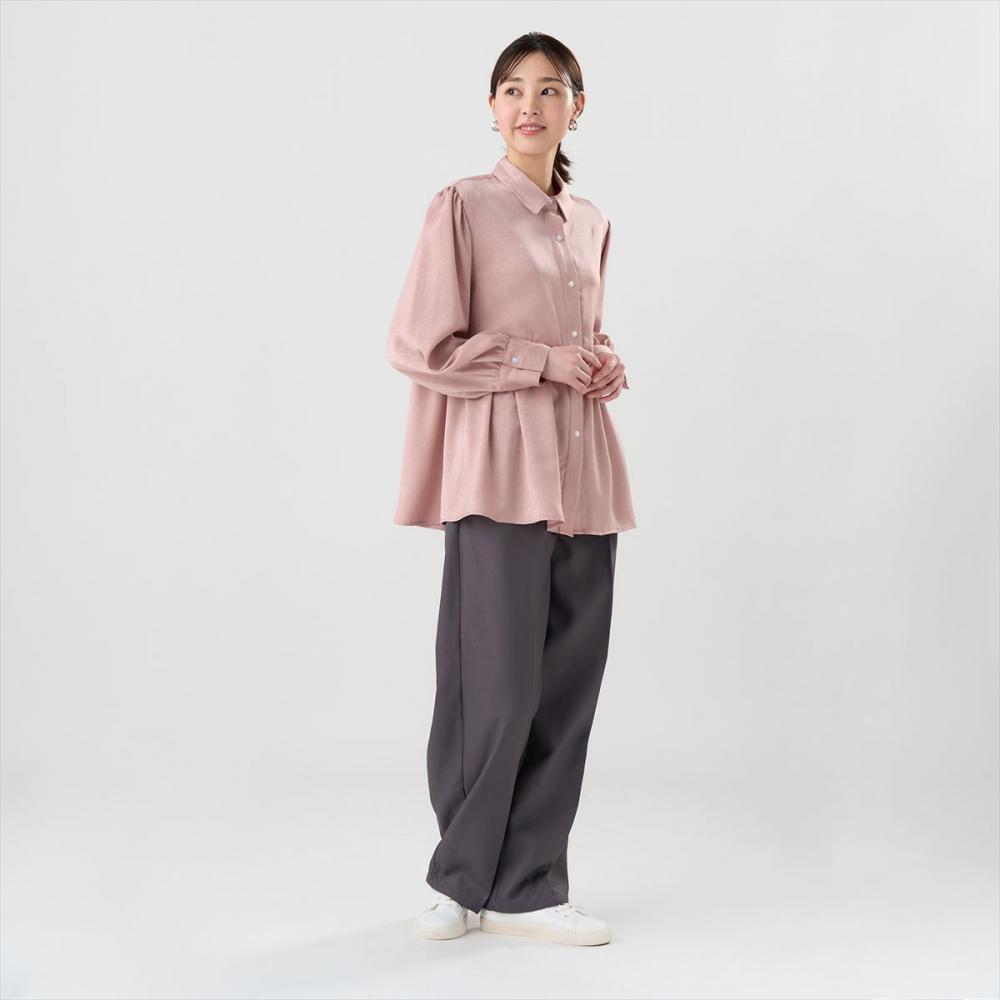 上品な光沢感ととろみ感がある サテン生地柔らかな質感が着やすい一枚。
