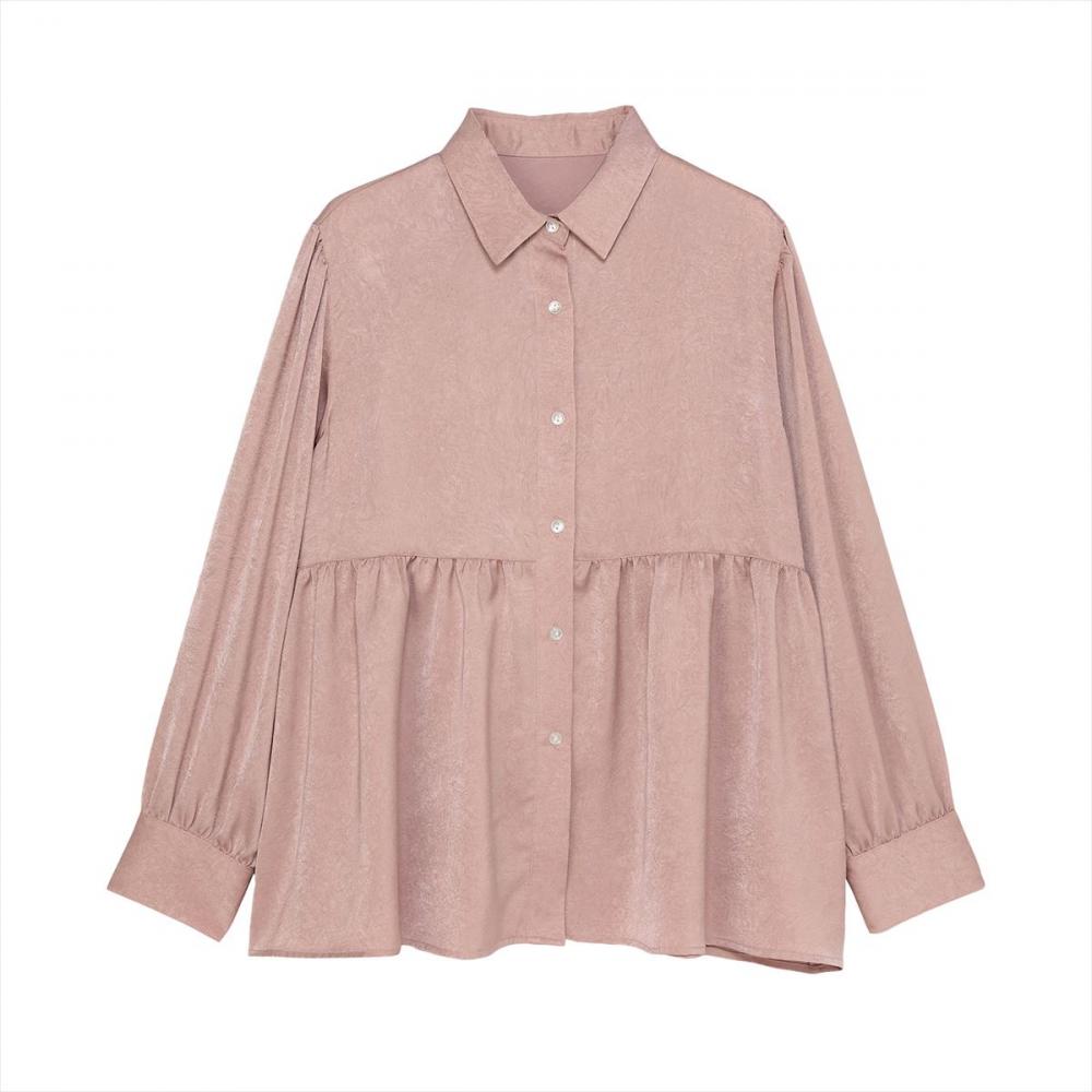 生地のクラッシュ感がコーデに深みを 与えてくれるペプラムシャツ。