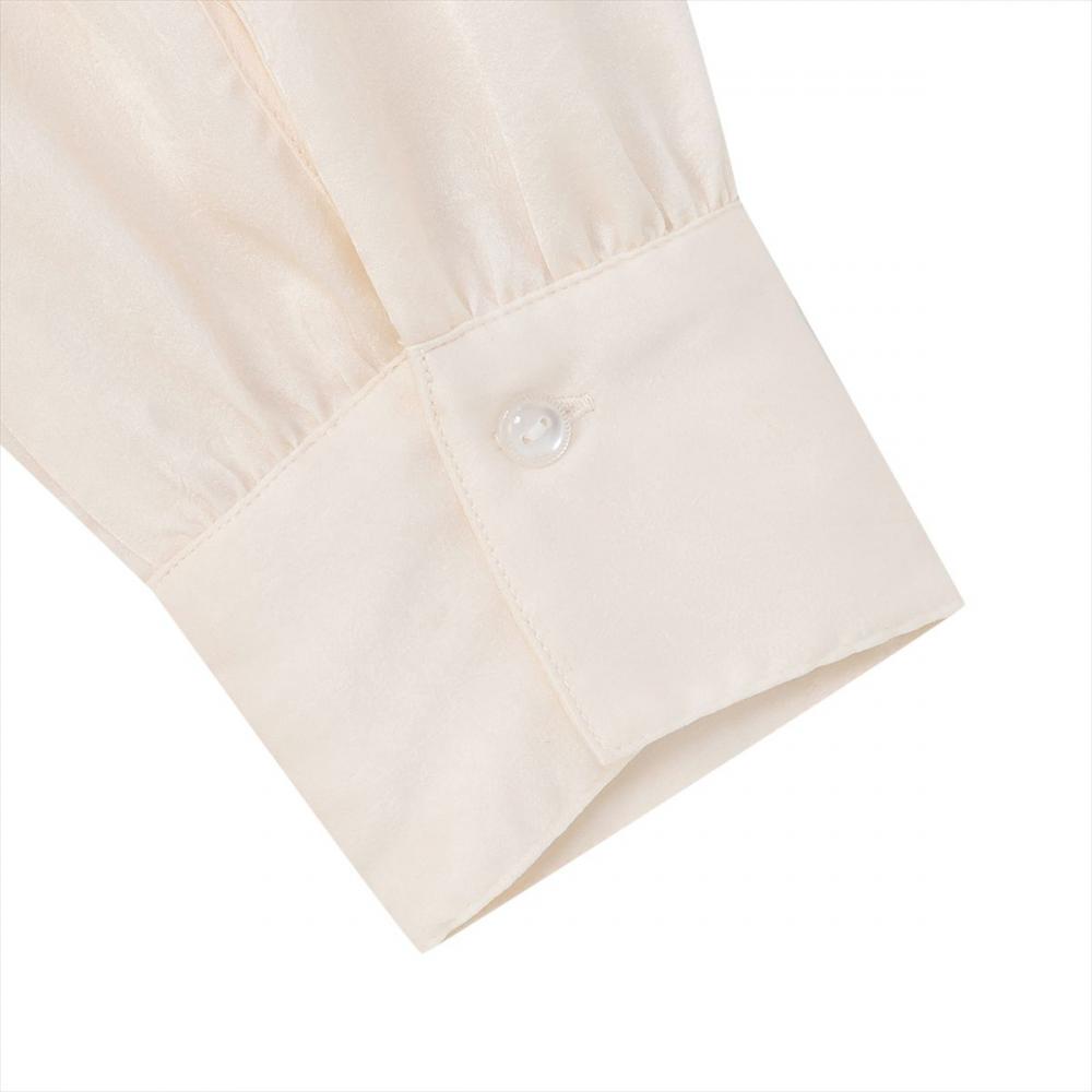 上品な光沢感ととろみ感がある サテン生地柔らかな質感が着やすい一枚。