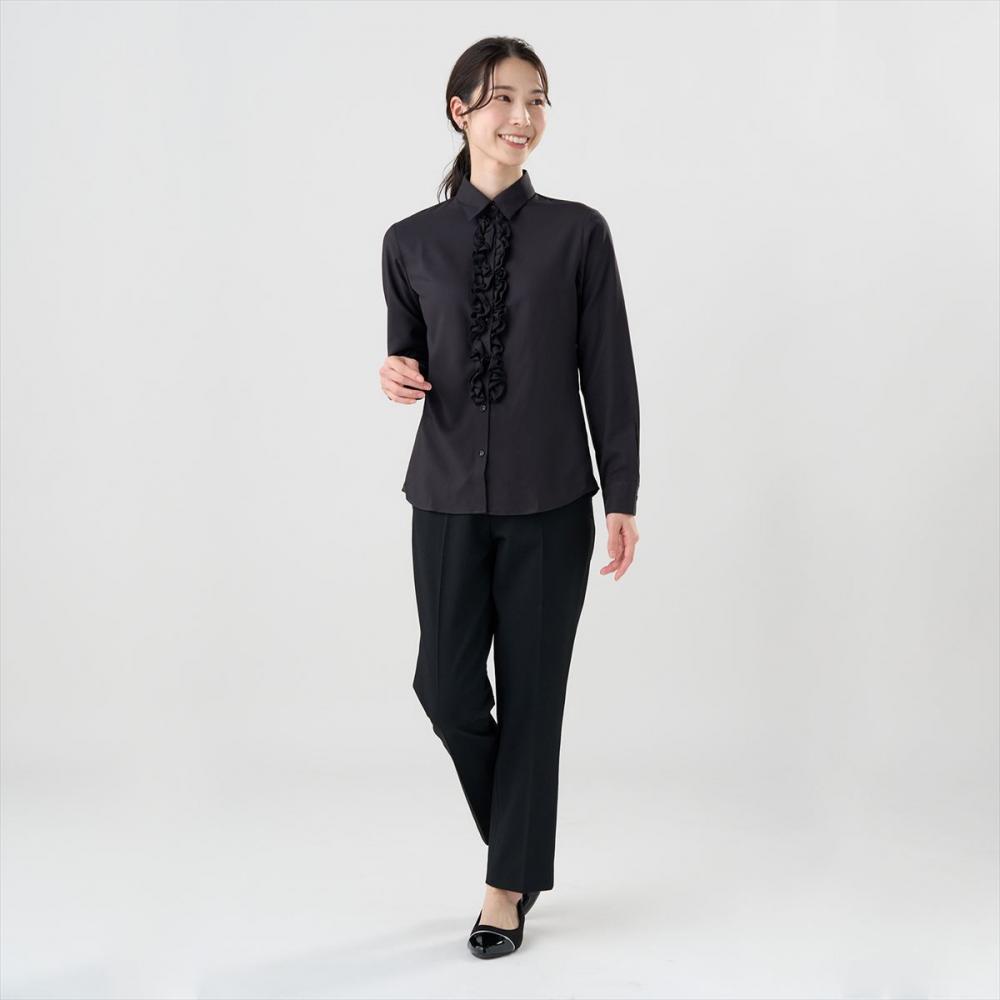 華美すぎず、甘すぎない前立フリルが ビジネスシーンでも使いやすい一枚。