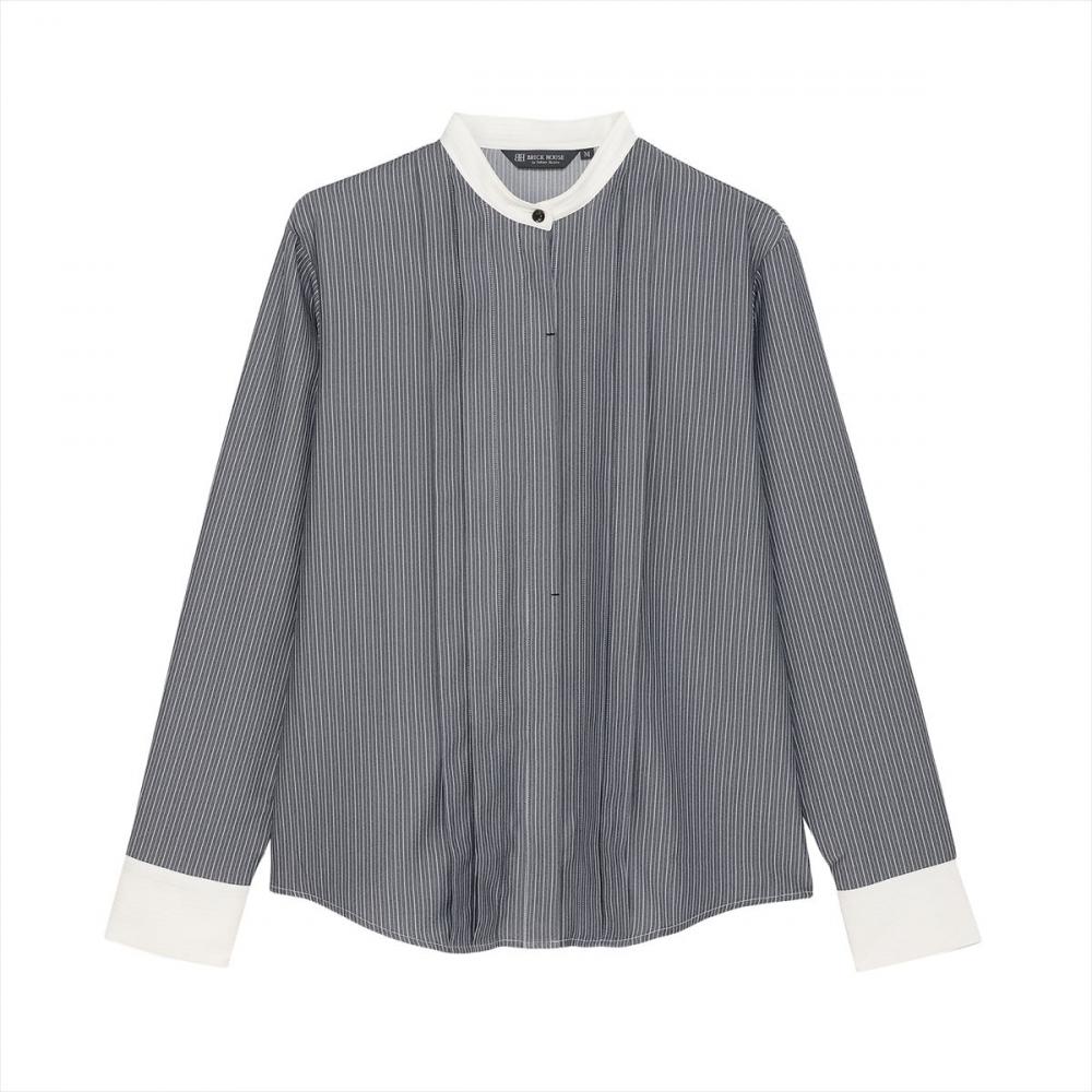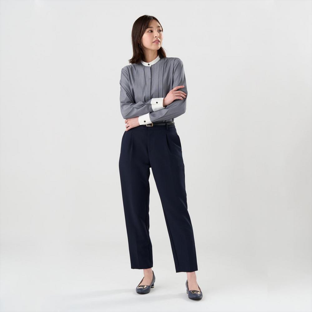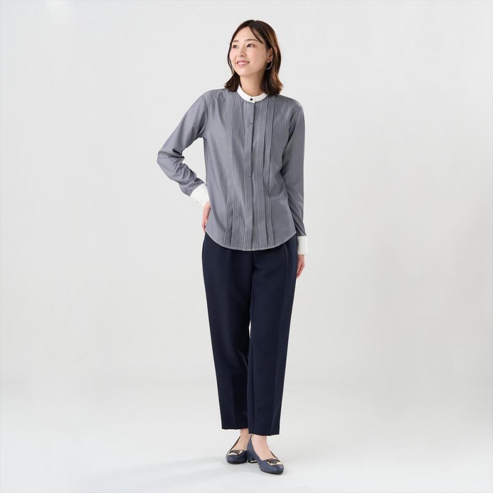 クレリック使用のスタンド衿と 前身頃のピンタック仕様でさり気ない デザインで個性を演出する一枚。