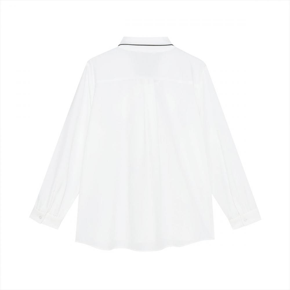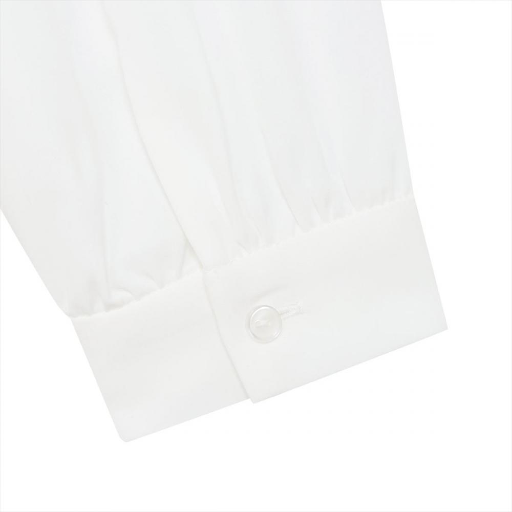 配色リボンタイが衿元に彩りを添え、 華やかさを演出してくれる一枚。 オケージョン利用にも◎なデザイン。