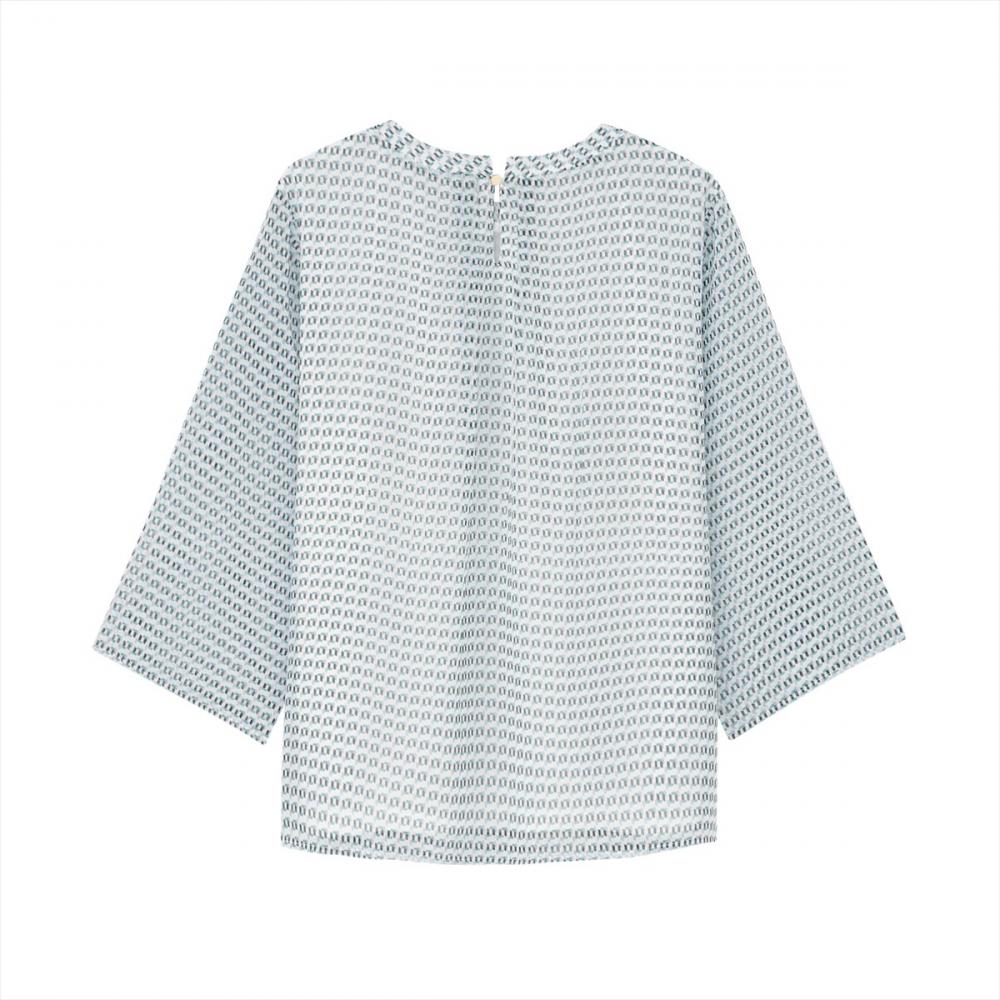 幾何学柄がコーデにアクセントを 加えてくれる一枚は、カジュアル過ぎず シンプルなボトムス類と相性◎です。