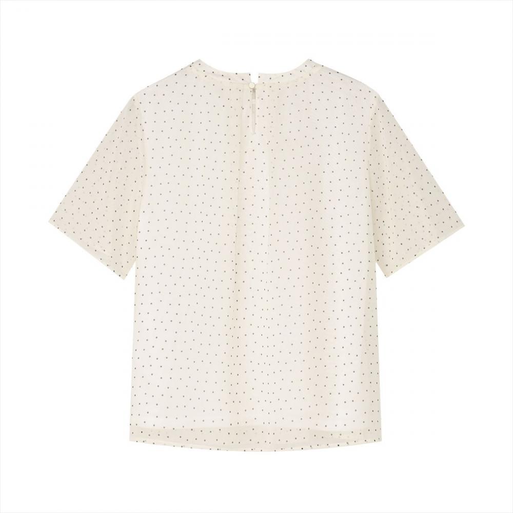 【 五分袖 ランダムドット シフォンブラウス 】素材 表地ポリエステル100%、裏地:ポリエステル100% 原産国 インドネシア 注意点 ※こちらの商品には形態安定加工が 施されておりません。洗濯絵表示に 従ってお取り扱いください。