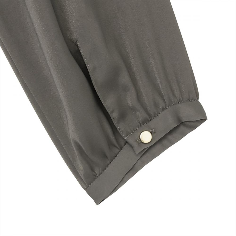 無地の落ち着いた色合いに光沢ある 生地感の組合せが洒落感漂うブラウス。