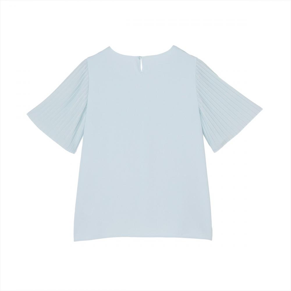 【袖プリーツ ジョーゼット五分袖ブラウス】