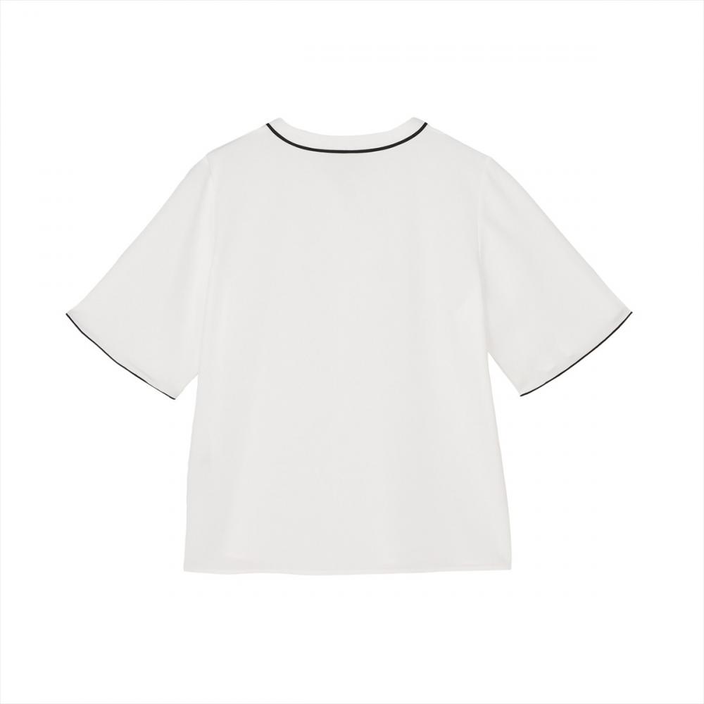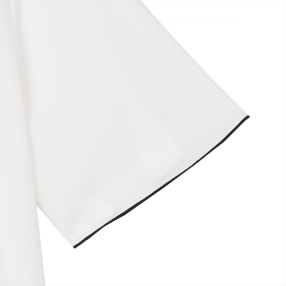 【配色パイピング ジョーゼット 五分袖ブラウス】