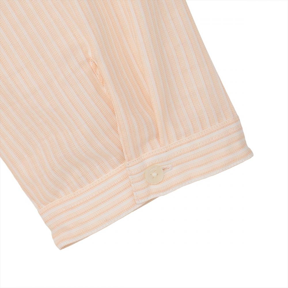 二重に重ねたふわっとガーゼの、風が通る 柔らかな風合いと全体的にややゆとりを 持たせたシルエットデザインで動きやすい ストレスフリーなシャツスタイルを実現。