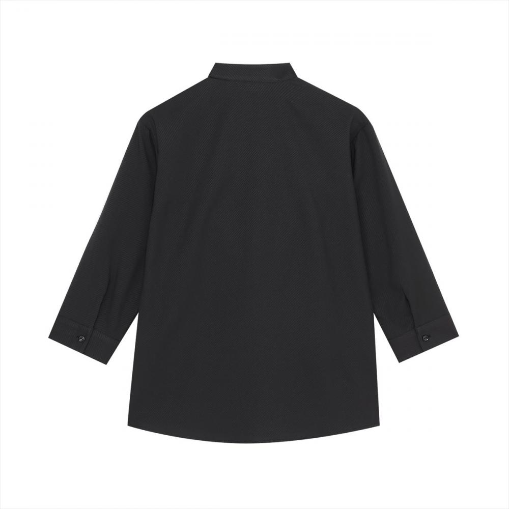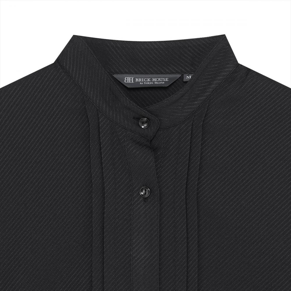 スタンド衿に前立付近のタックが 上品感をプラスするブラウス。