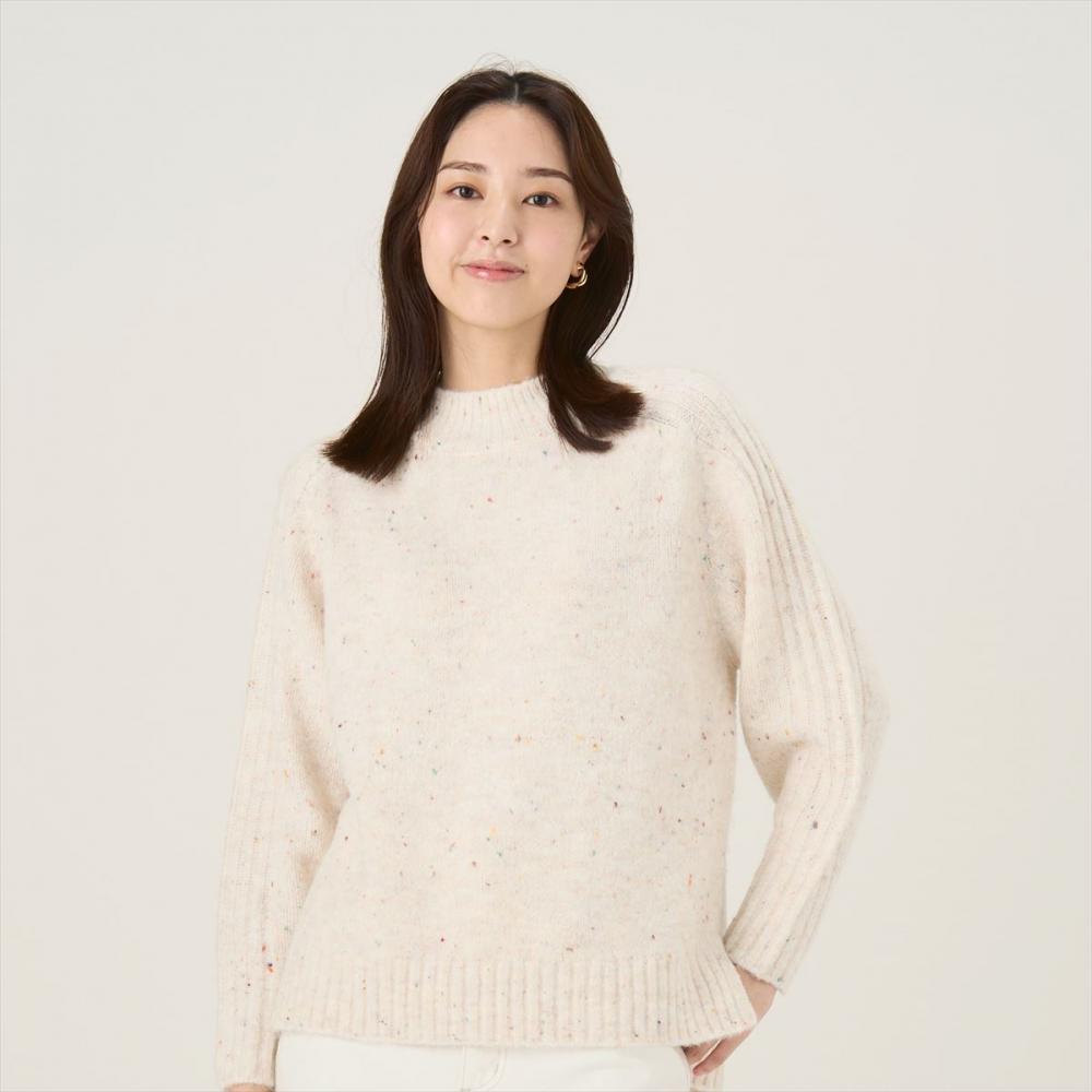 凹凸のあるネップヤーンのニットは シンプルデザインでも複数の色味を 加えたネップ(糸節)がアクセントになり、 程よいカジュアル感と抜け感を演出。