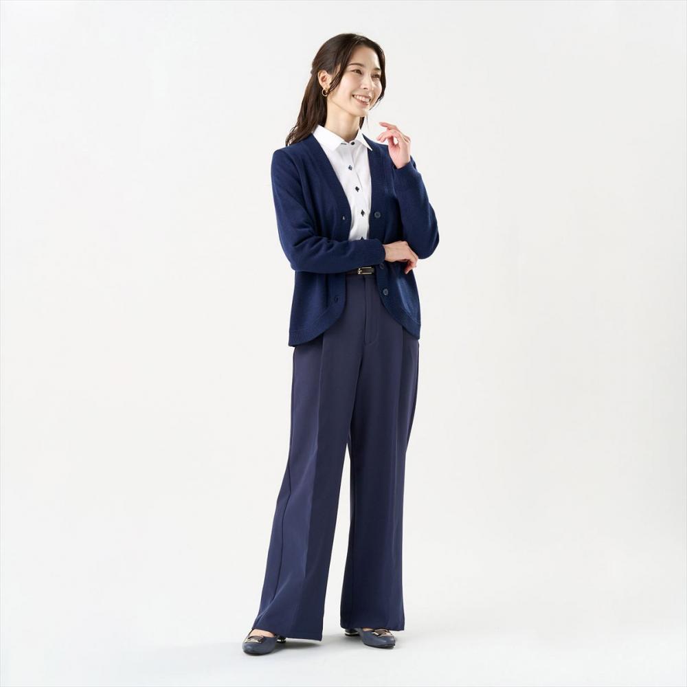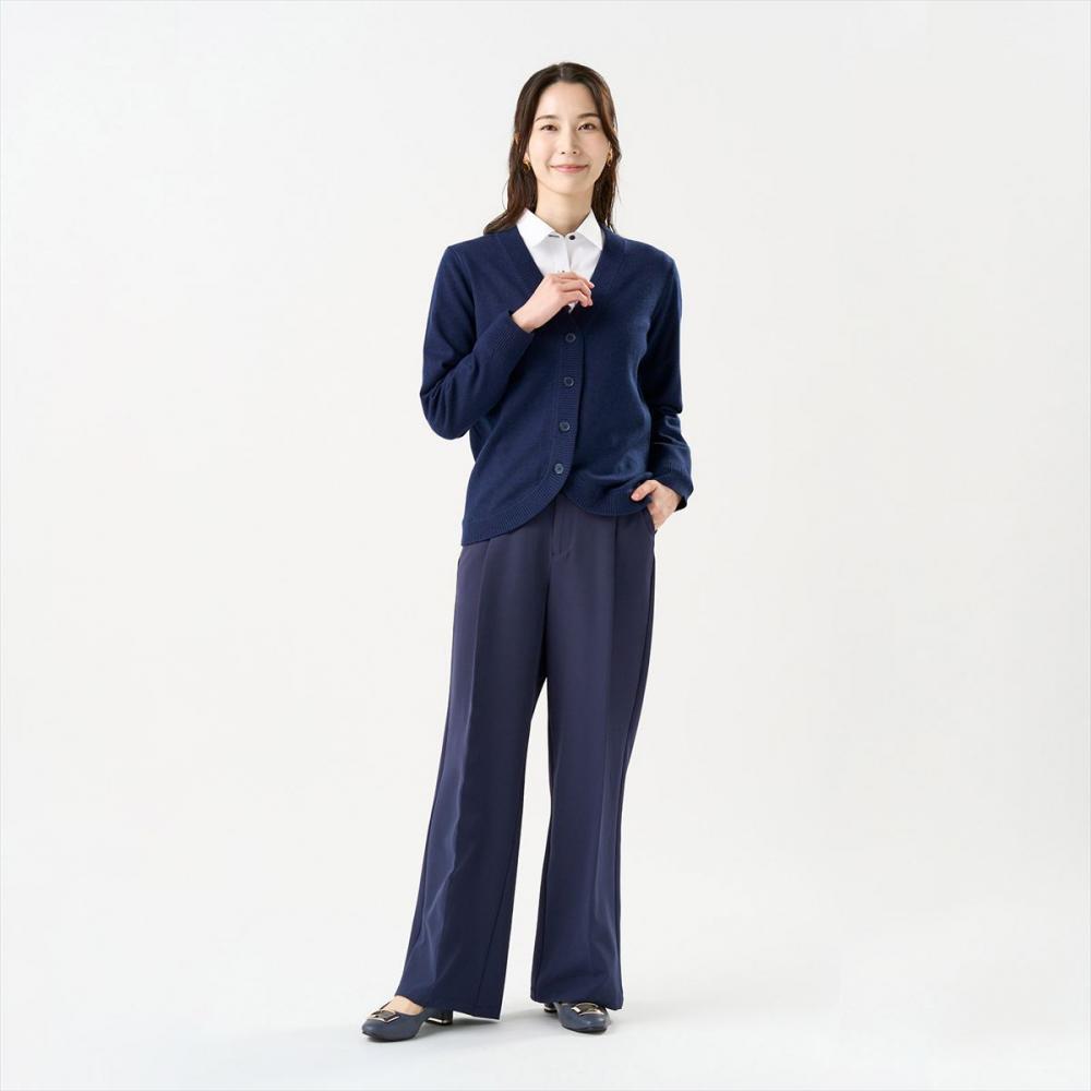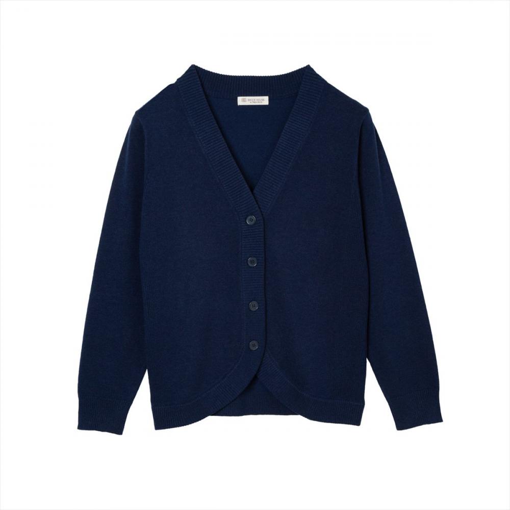 丸みのある裾がかわいい雰囲気の ベーシックなVネックカーディガン。