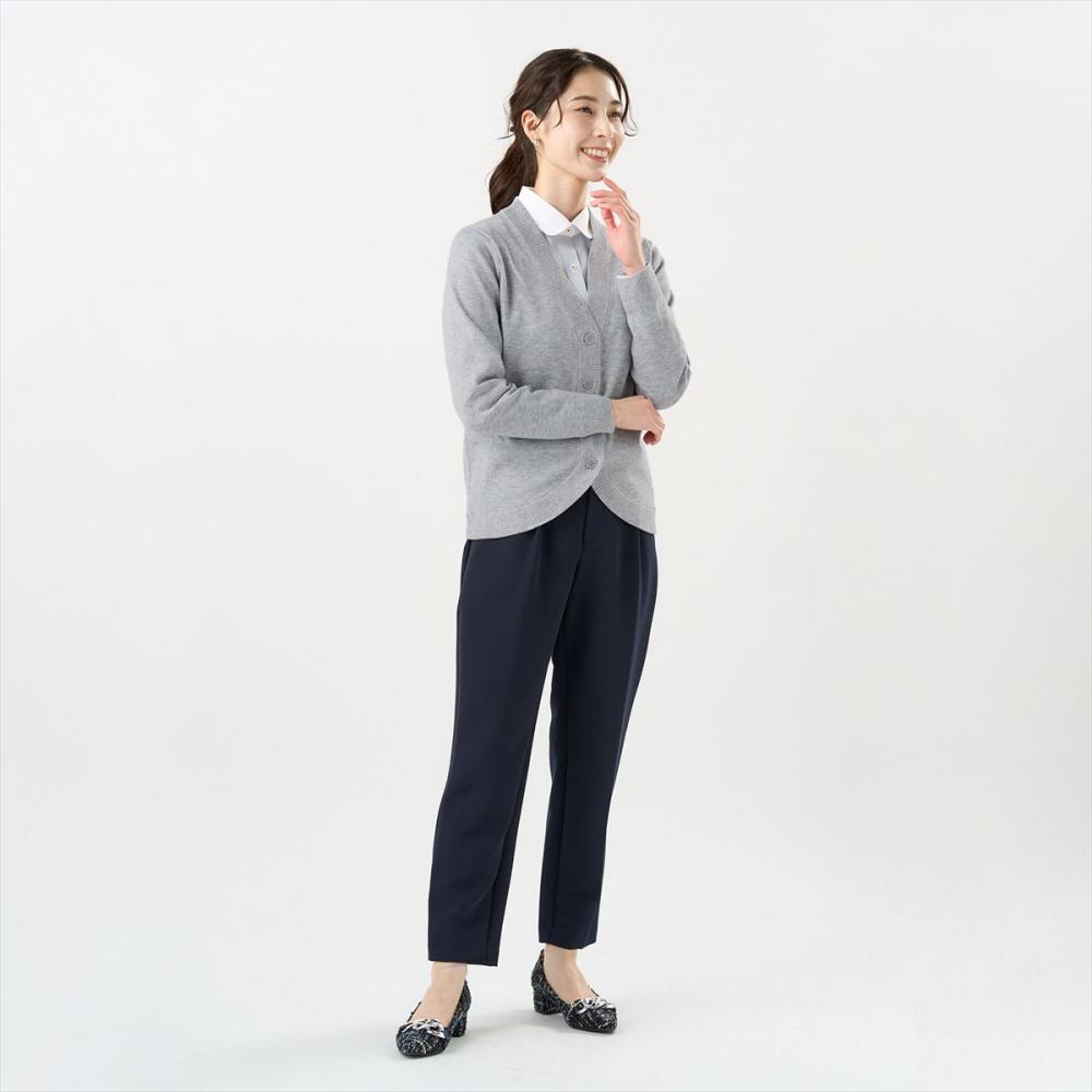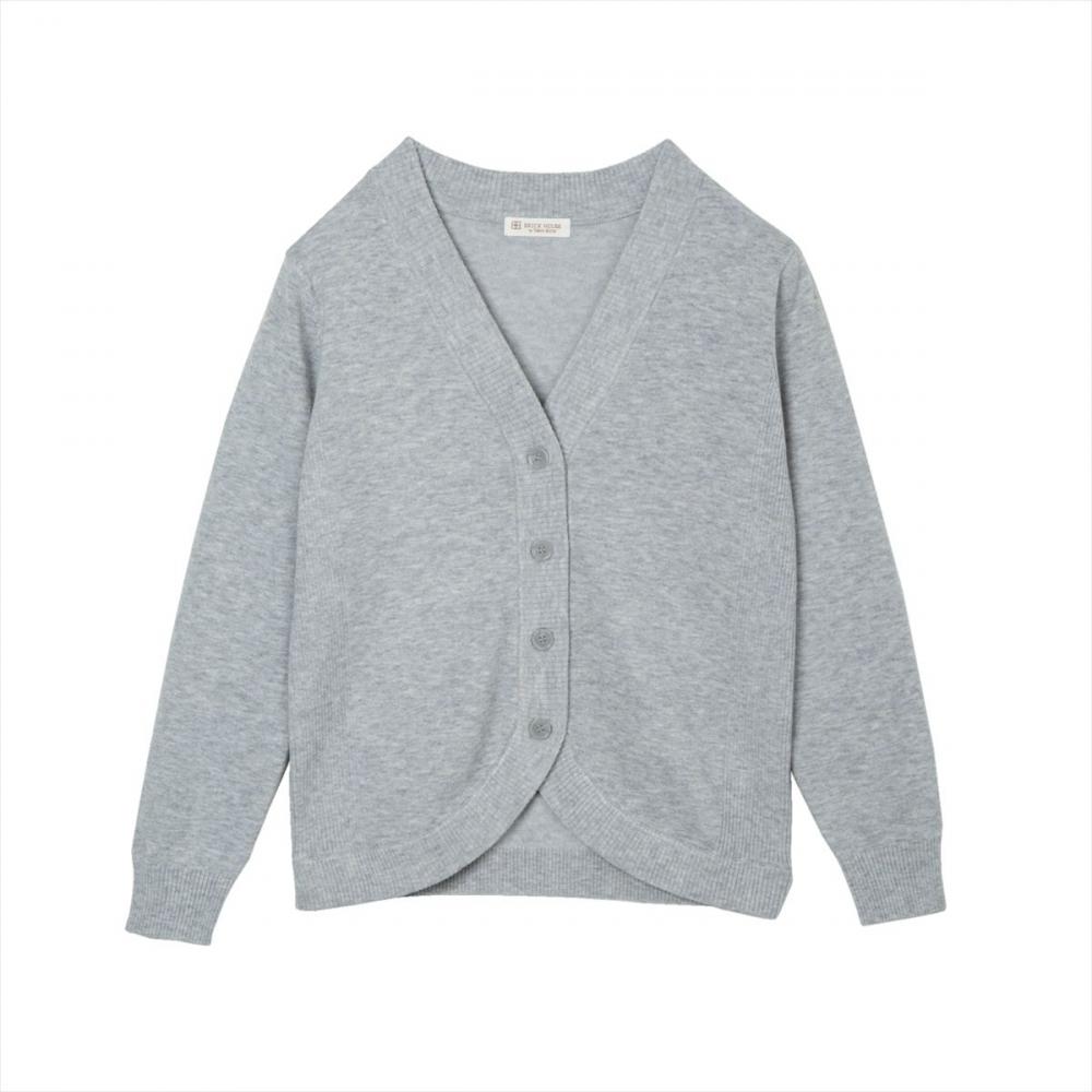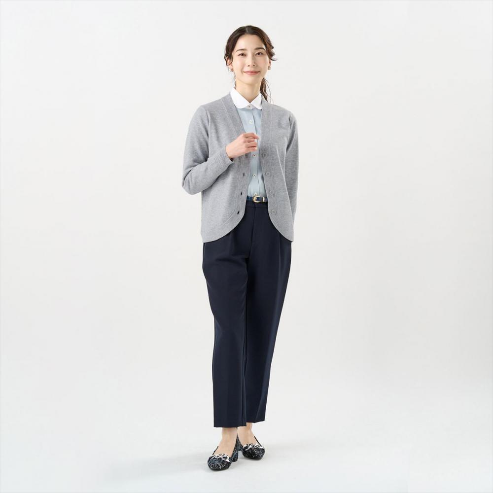 丸みのある裾がかわいい雰囲気の ベーシックなVネックカーディガン。