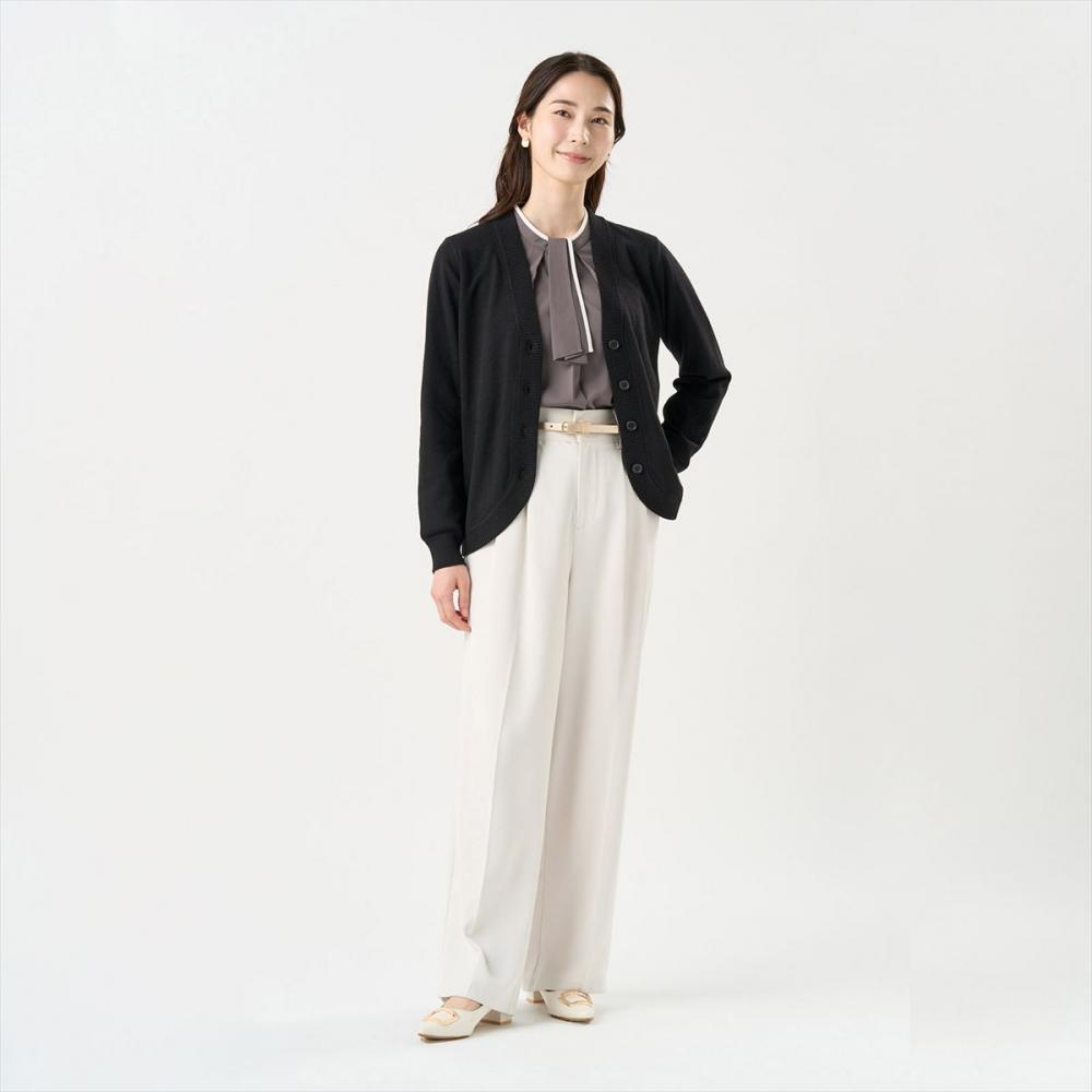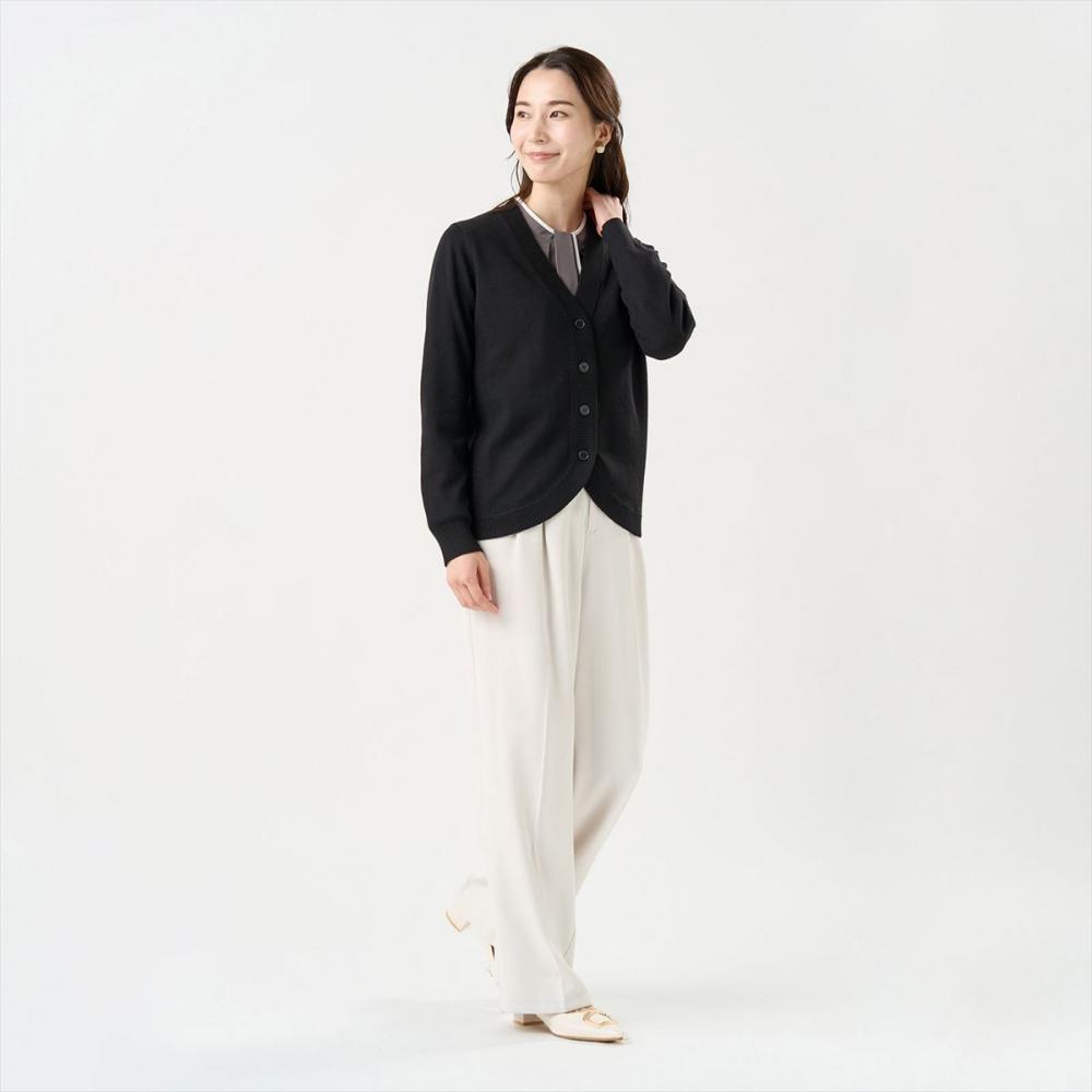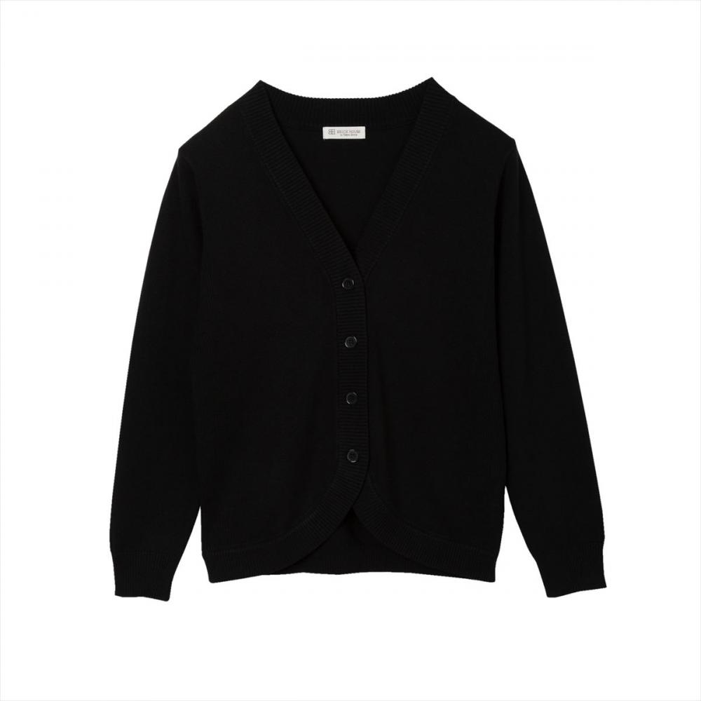 丸みのある裾がかわいい雰囲気の ベーシックなVネックカーディガン。