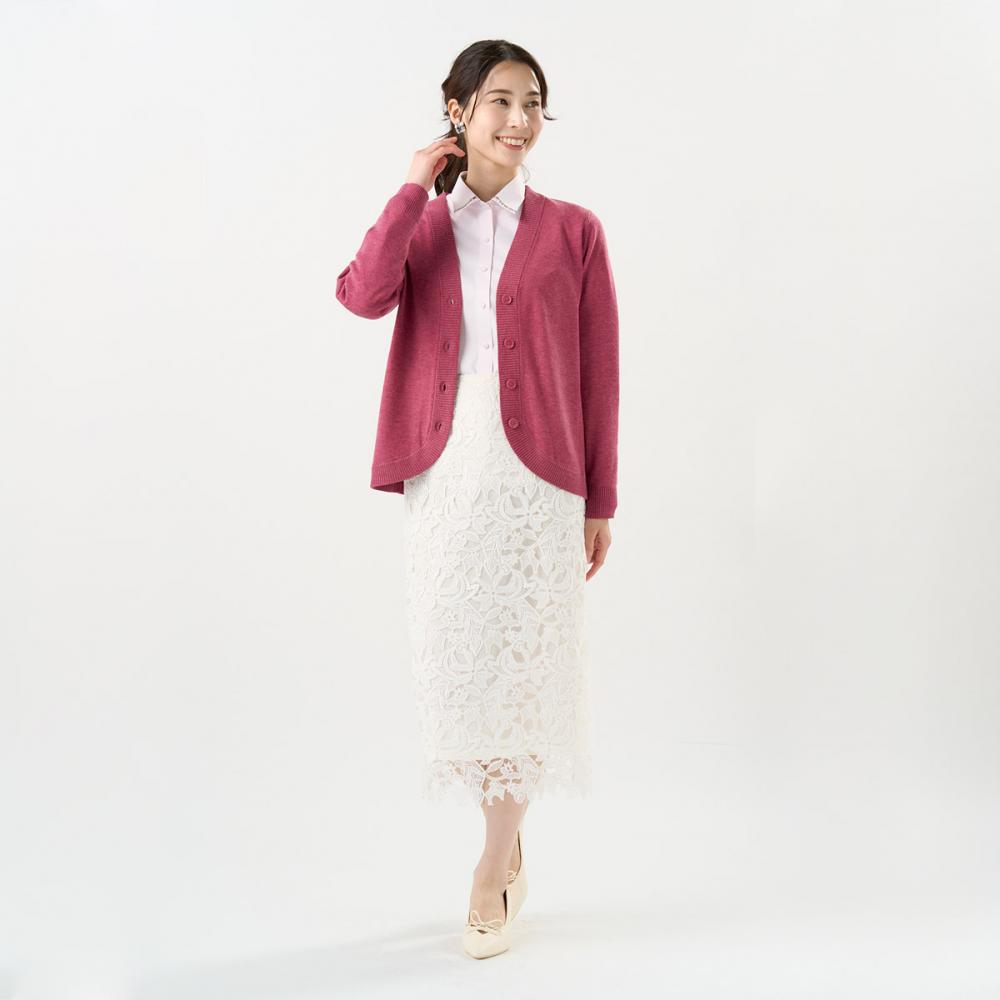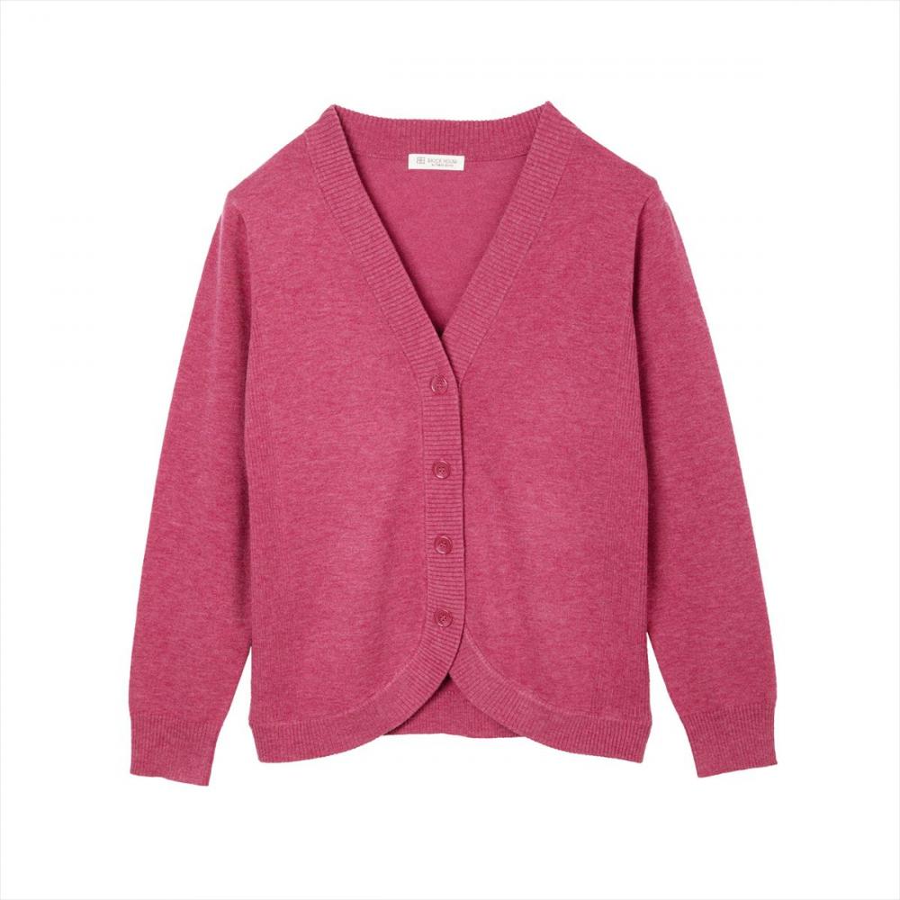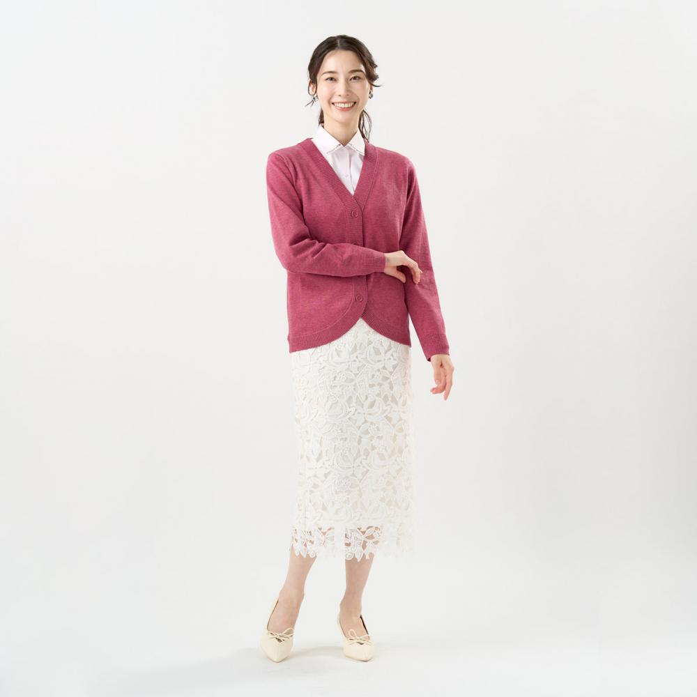丸みのある裾がかわいい雰囲気の ベーシックなVネックカーディガン。