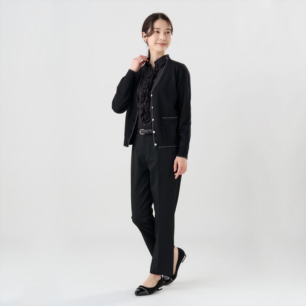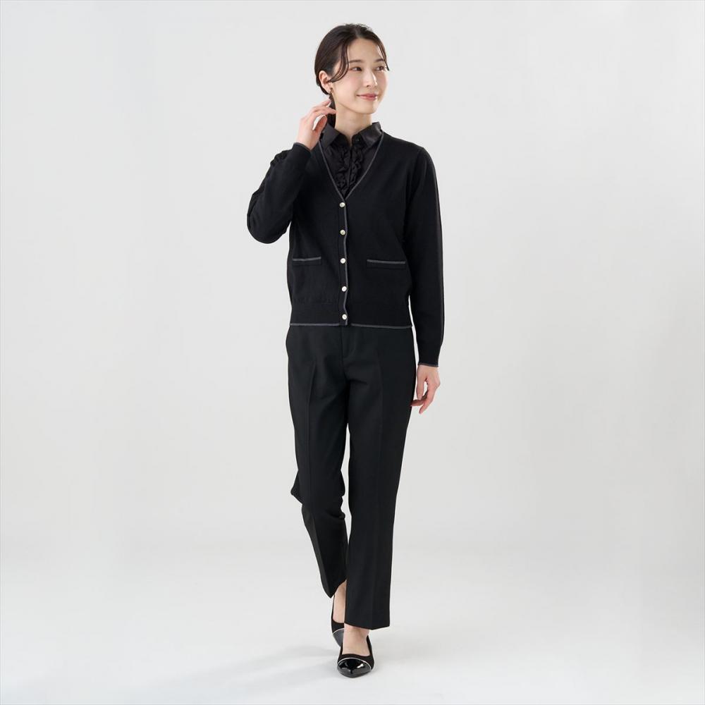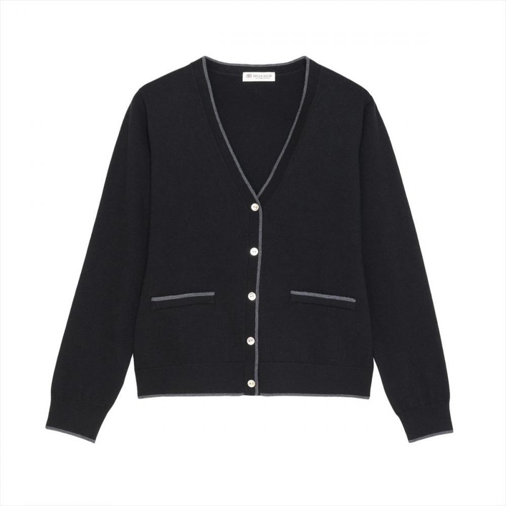前立てから衿部分、フェイクポケットに アクセントの配色を施した 着回し力抜群のニットアイテムです。