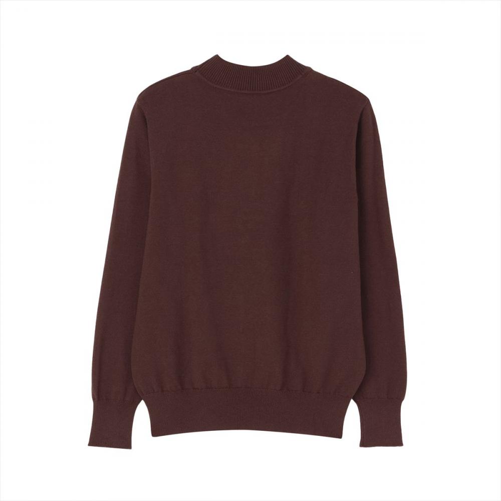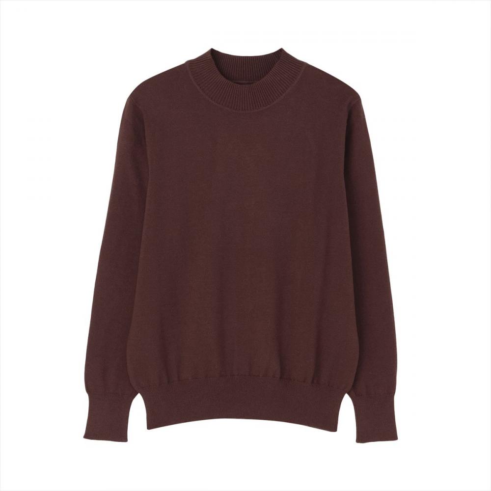 飾りのないシンプルな仕様のニットで すっきりと着こなせるアイテム。