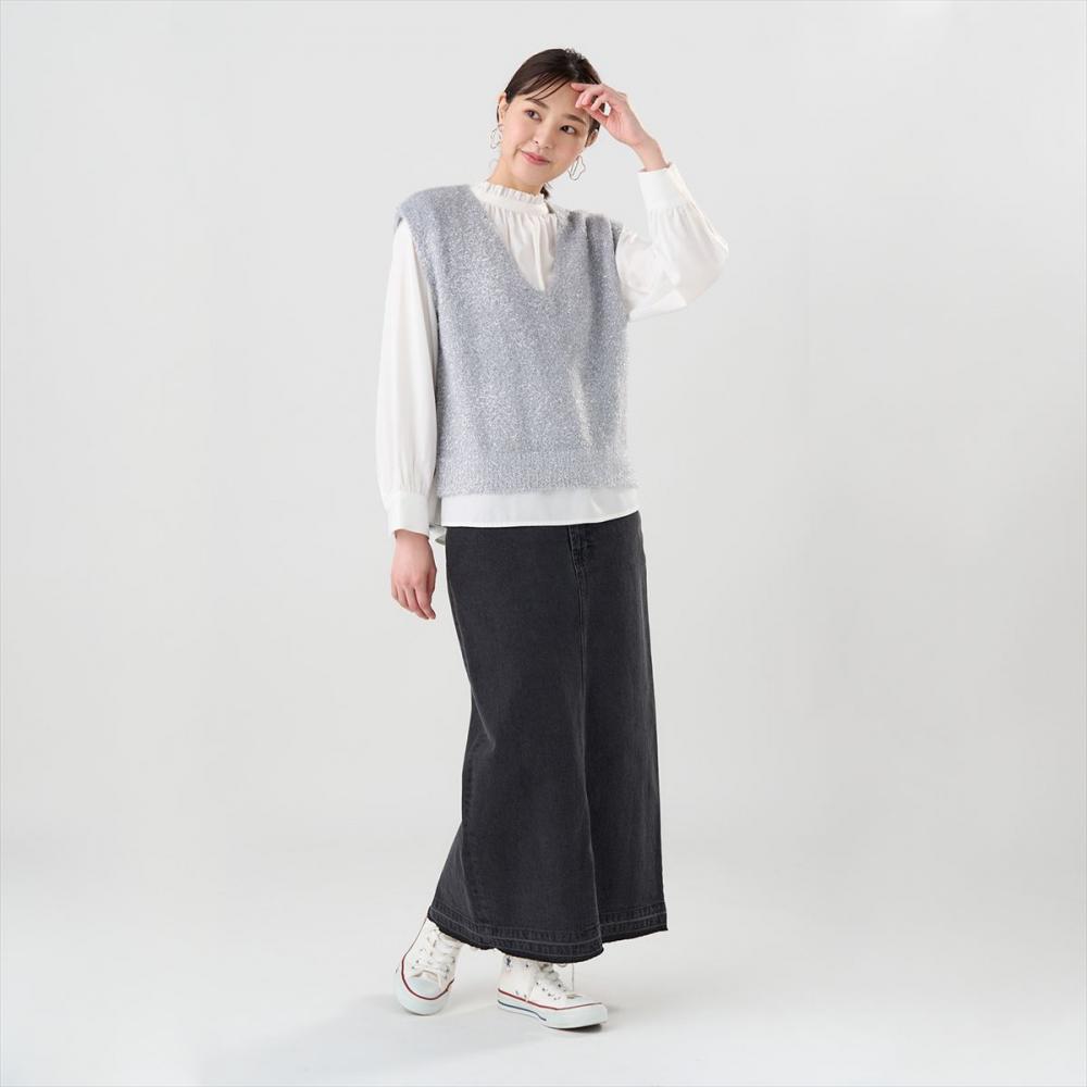 【シャイニーフェザー Vネックベスト】