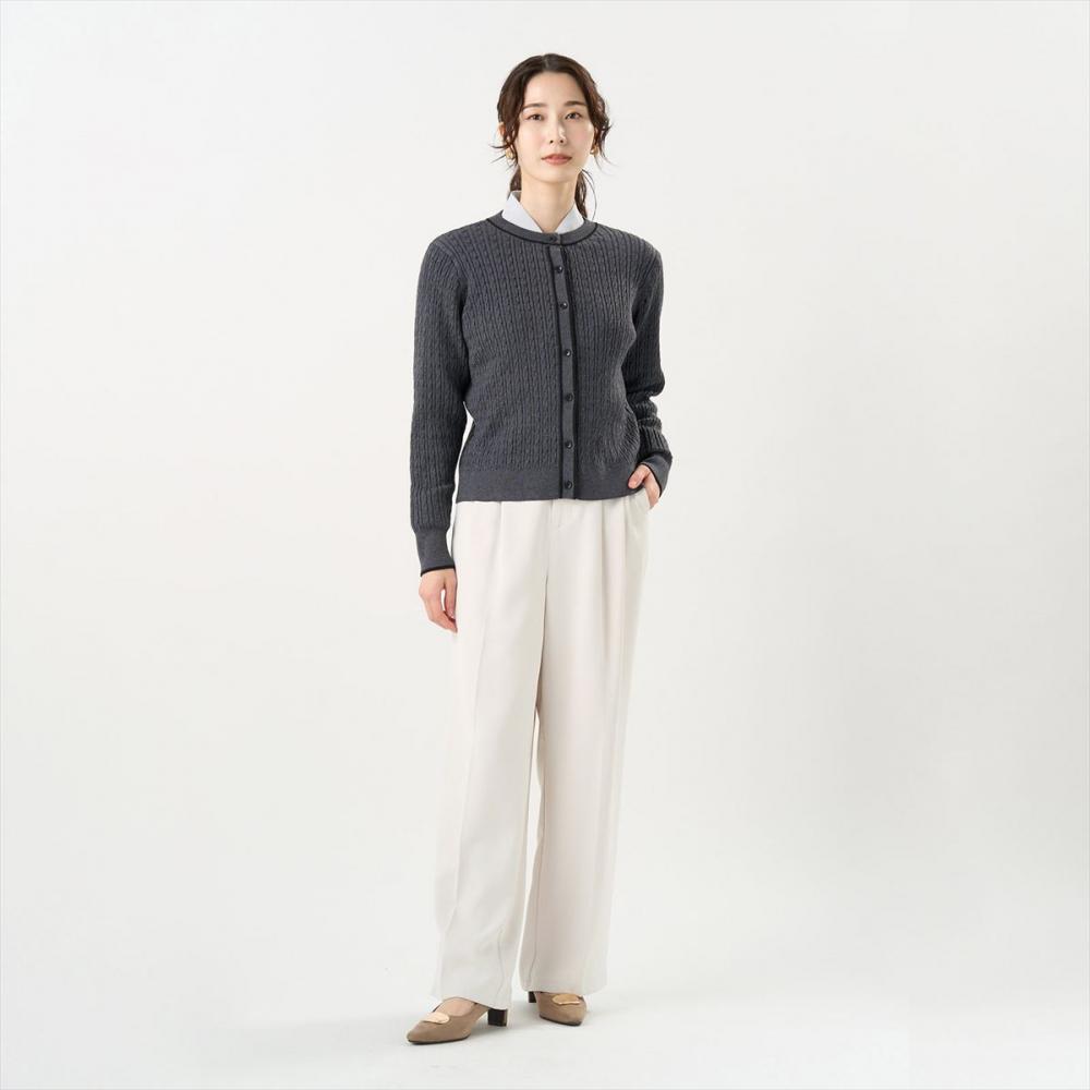 一枚でおしゃれな印象を与えてくれる ケーブルニットカーディガン。