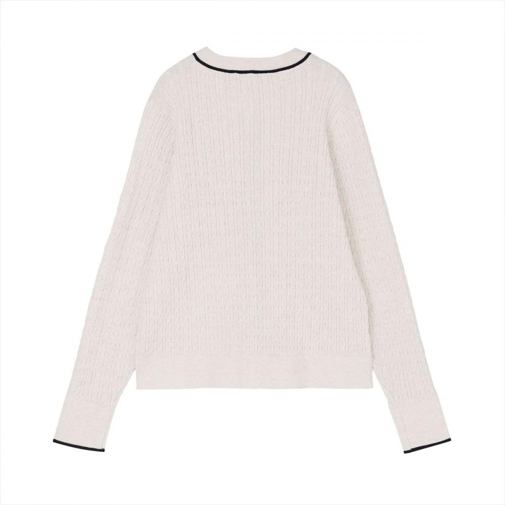 【アンチピリング 配色ケーブルカーディガン】