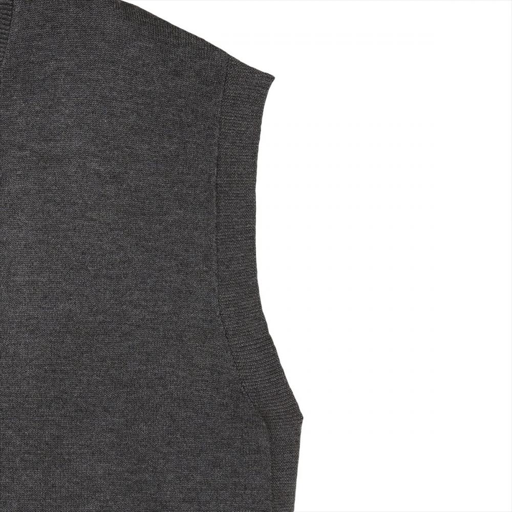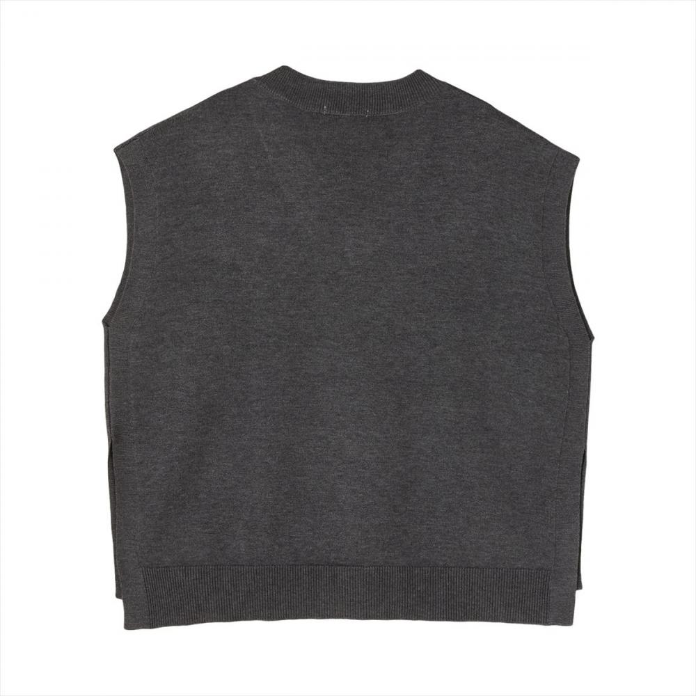 着回し力のあるVネックベストに ゆったりめのカジュアルシルエットを あわせたレイヤードスタイルに◎な一枚。