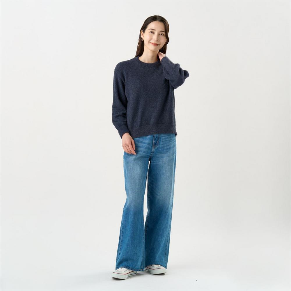 ふわもちな柔らかな風合いと毛足の 長さがアクセントのフェザーニット。