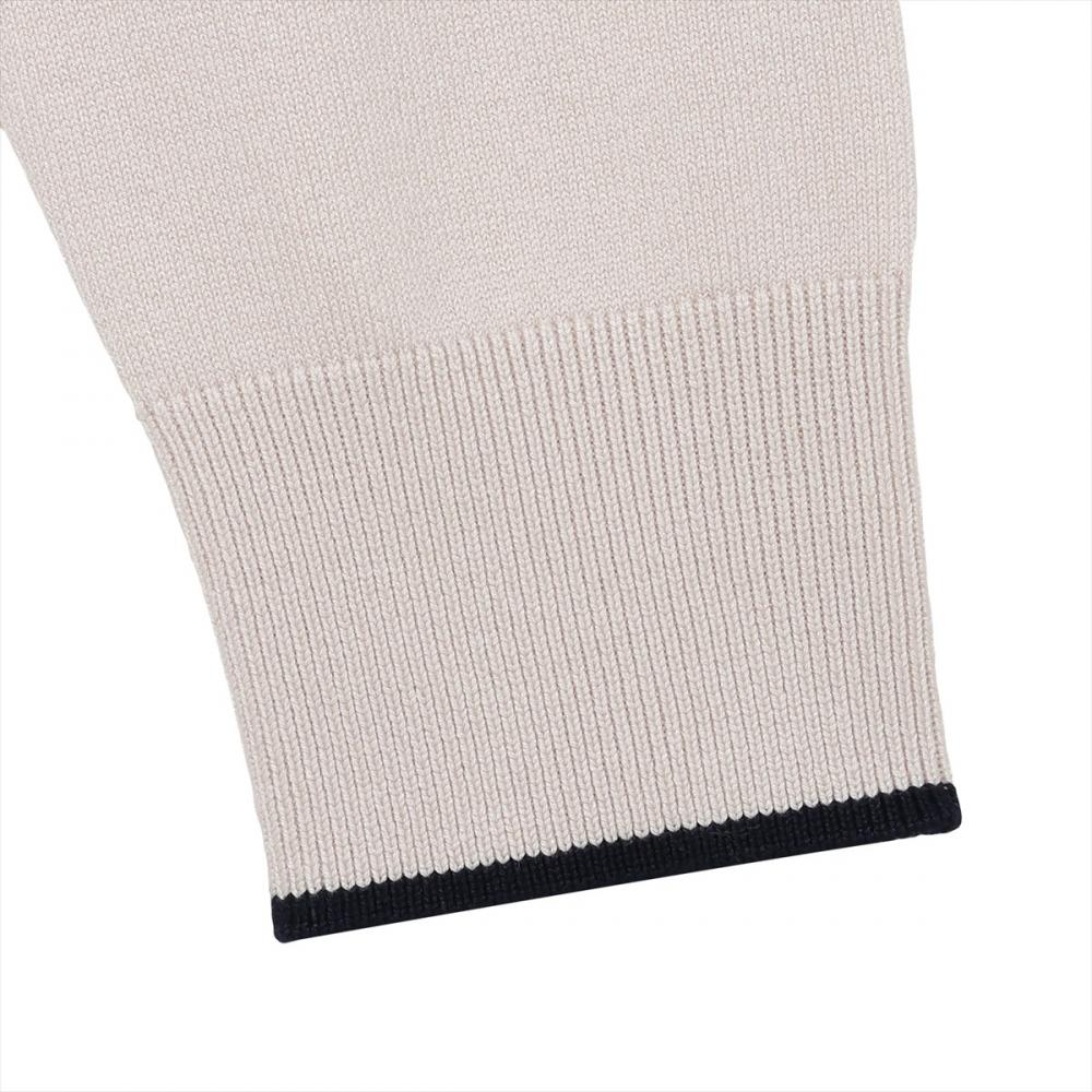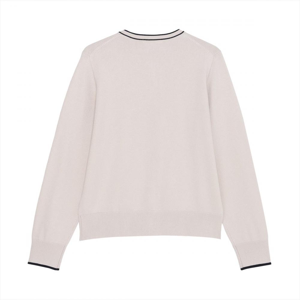 衿元、前立て、袖口に配色されたカラー がアクセントになるカーディガン。