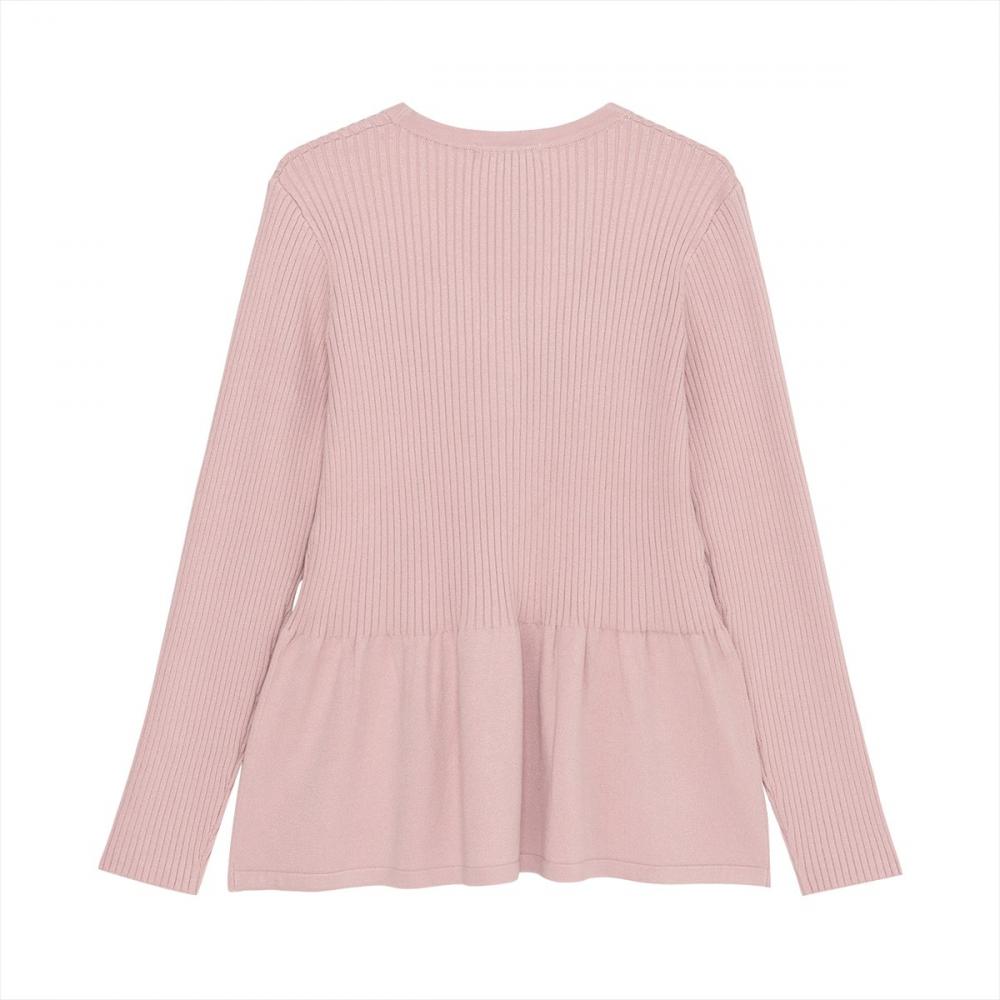 【リブ編みフレアVネックカーディガン】