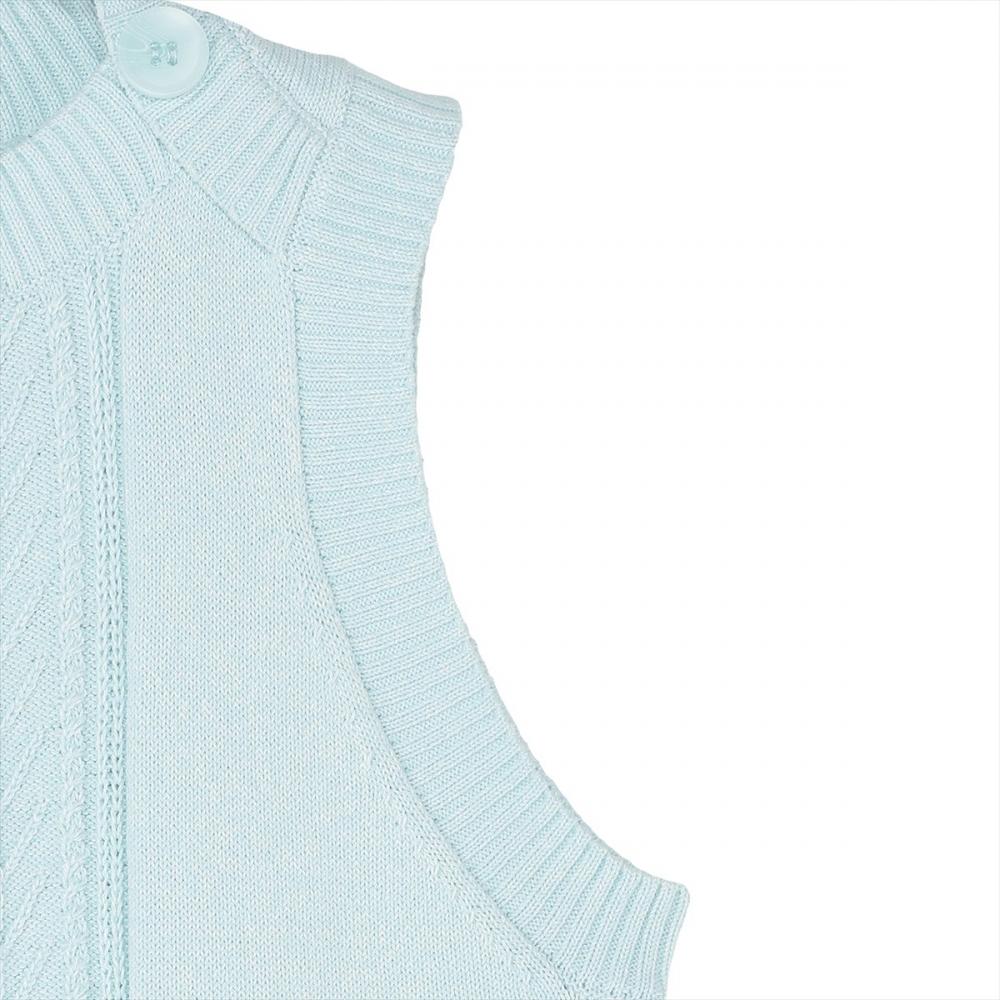 両肩部分に飾りボタンを加えて 可愛らしいデザインに仕上げました。