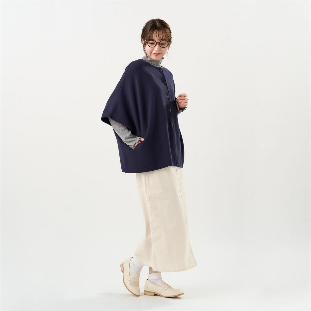 丈感のあるゆったり着れるポンチョは シンプルなデザインでコーデ幅を 広げてくれる優秀アイテム。