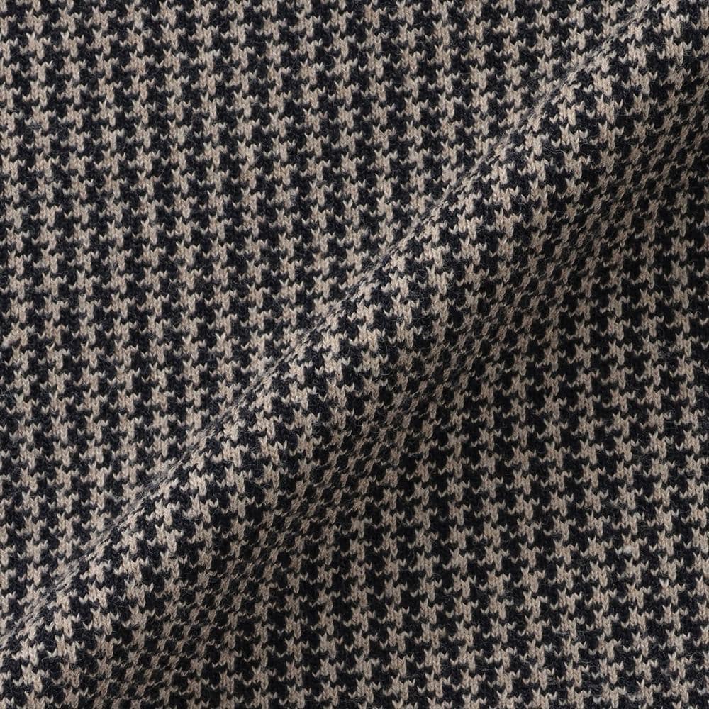 千鳥柄のジャカードニットは上品さの 中にカジュアル感も併せ持つアイテム。