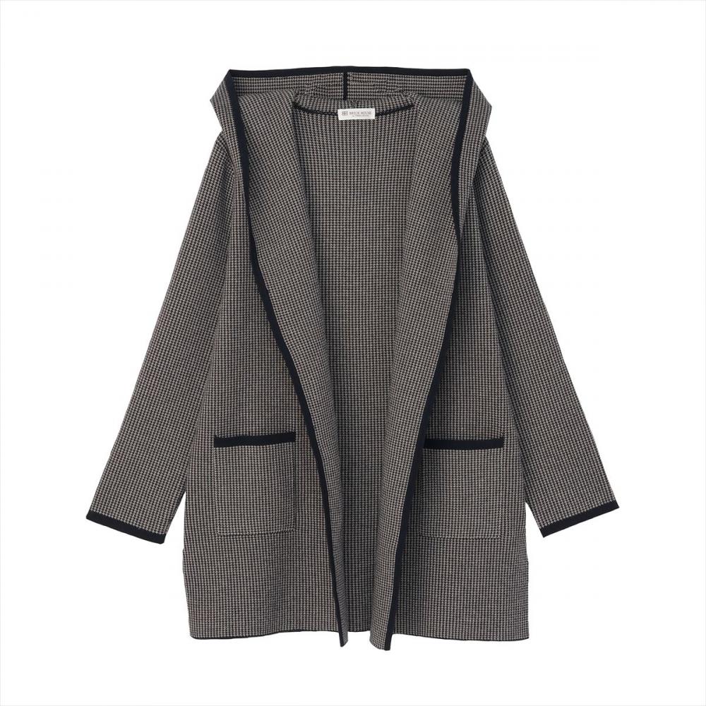 アウター 千鳥格子柄ジャカード フード付き コーディガン レディース