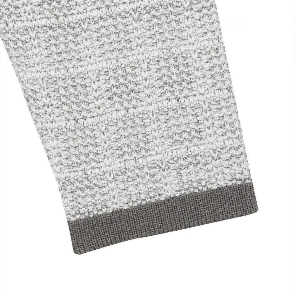 ツイード風生地に異なる雰囲気の編地を 配置した衿元や前立、フェイクポケット が上品なコーディネイトに仕上げます。