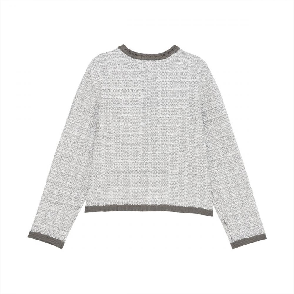 【 ツイード風 クルーネック ジャケット 】