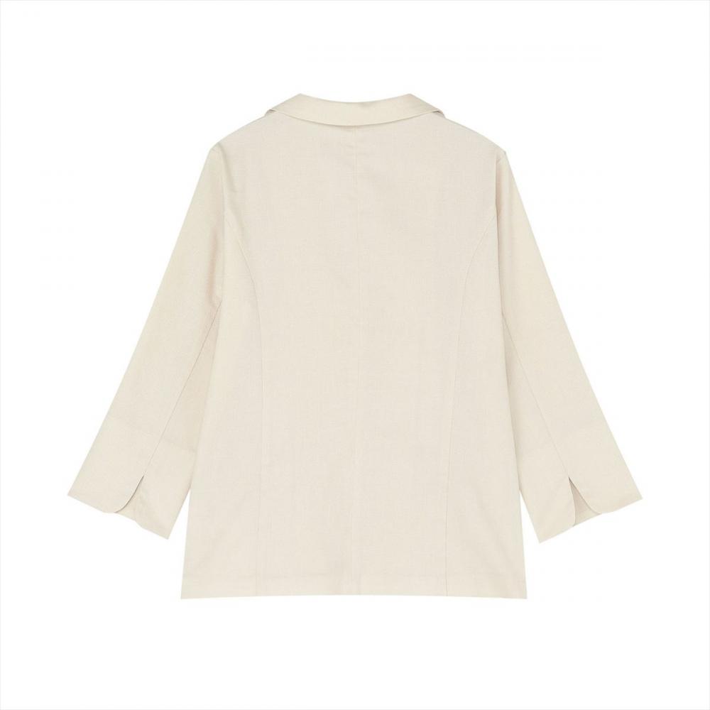 風が通りやすくて涼しいカラミ織の ジャケットは春から夏にかけて コーデに取り入れやすいデザイン。