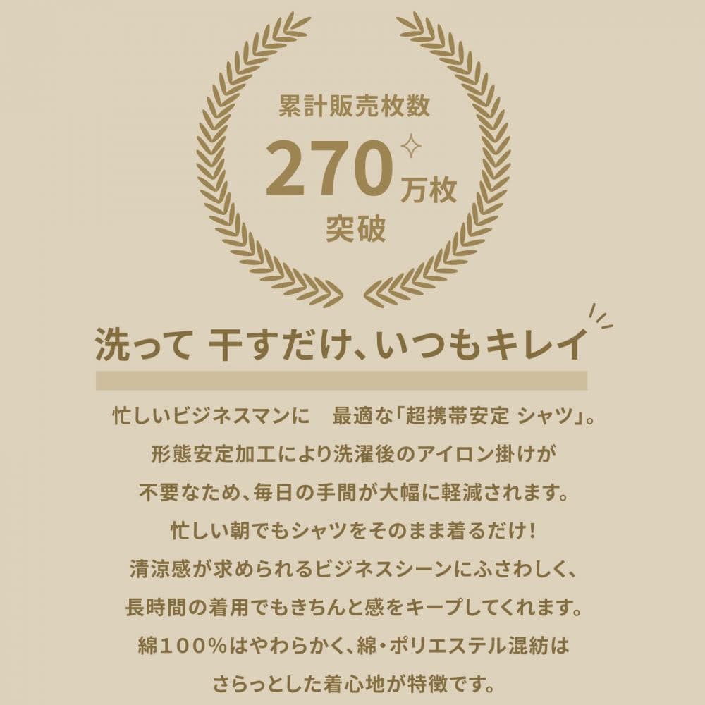 綿100%なのにお手入れ簡単 メンズ超形態安定シャツ