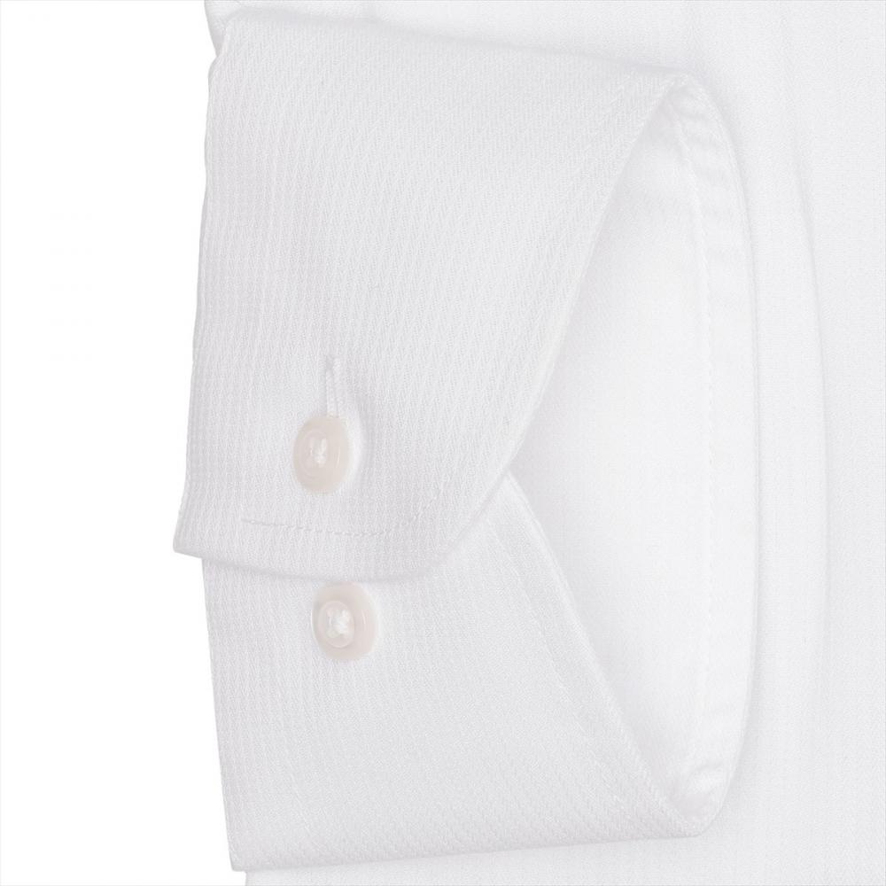 上品で洒落感漂う織柄の白シャツは なじみやすくビジネスシーンで活躍 してくれ、ネクタイとの相性も◎です。